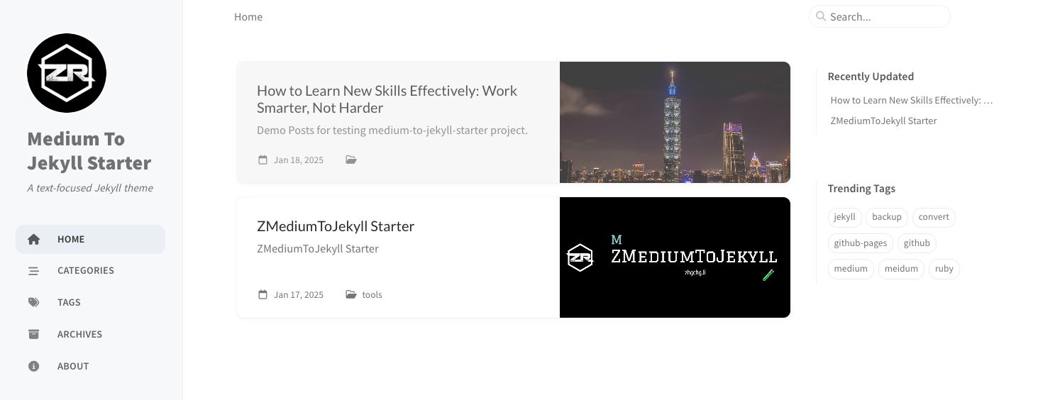 1. テンプレートリポジトリへ移動 -> medium-to-jekyll-starter.github.io