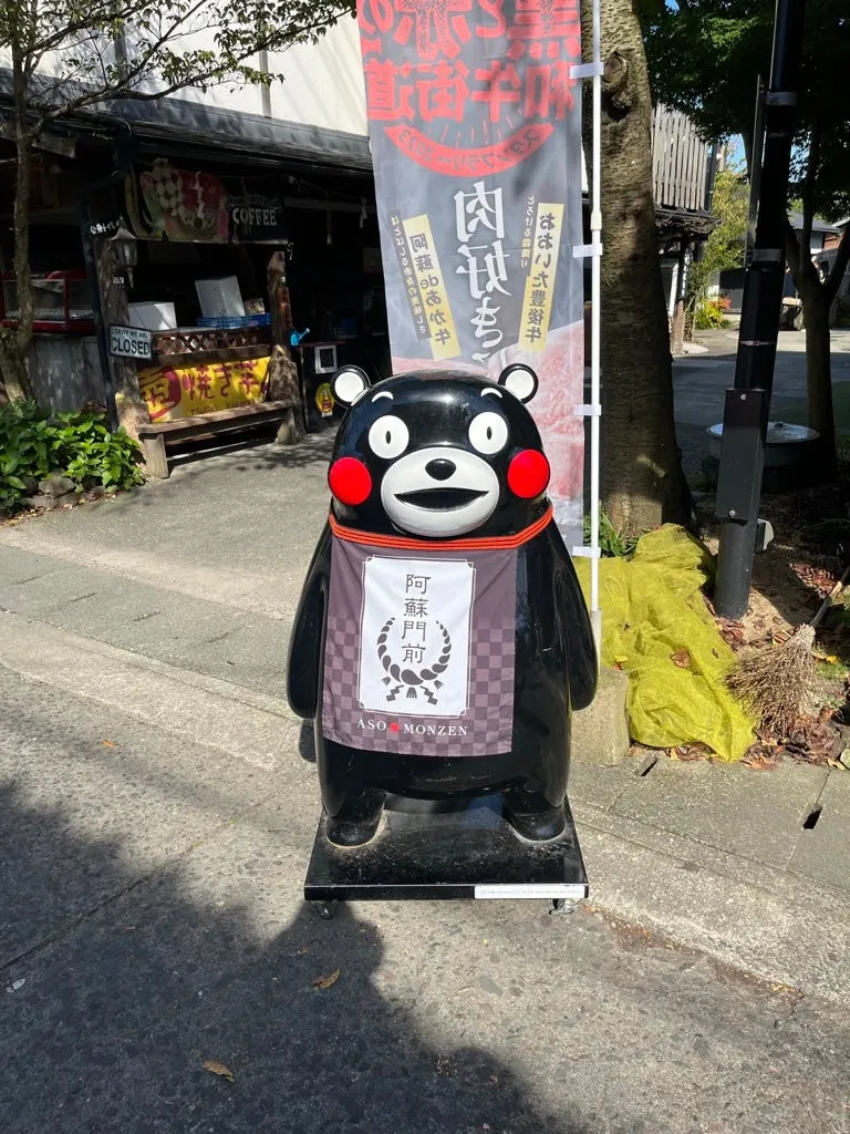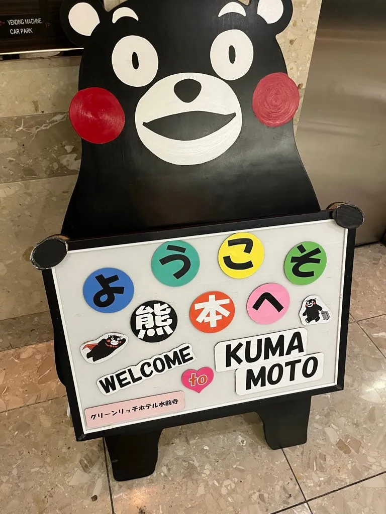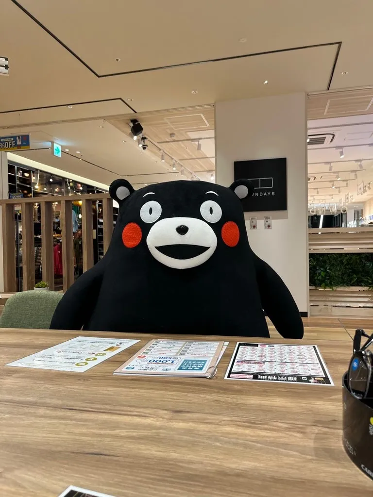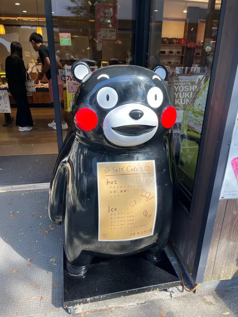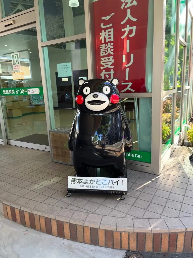 九州(熊本だけでなく)どこにでも熊本県のくまモン部長の痕跡があります。