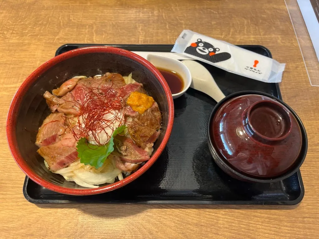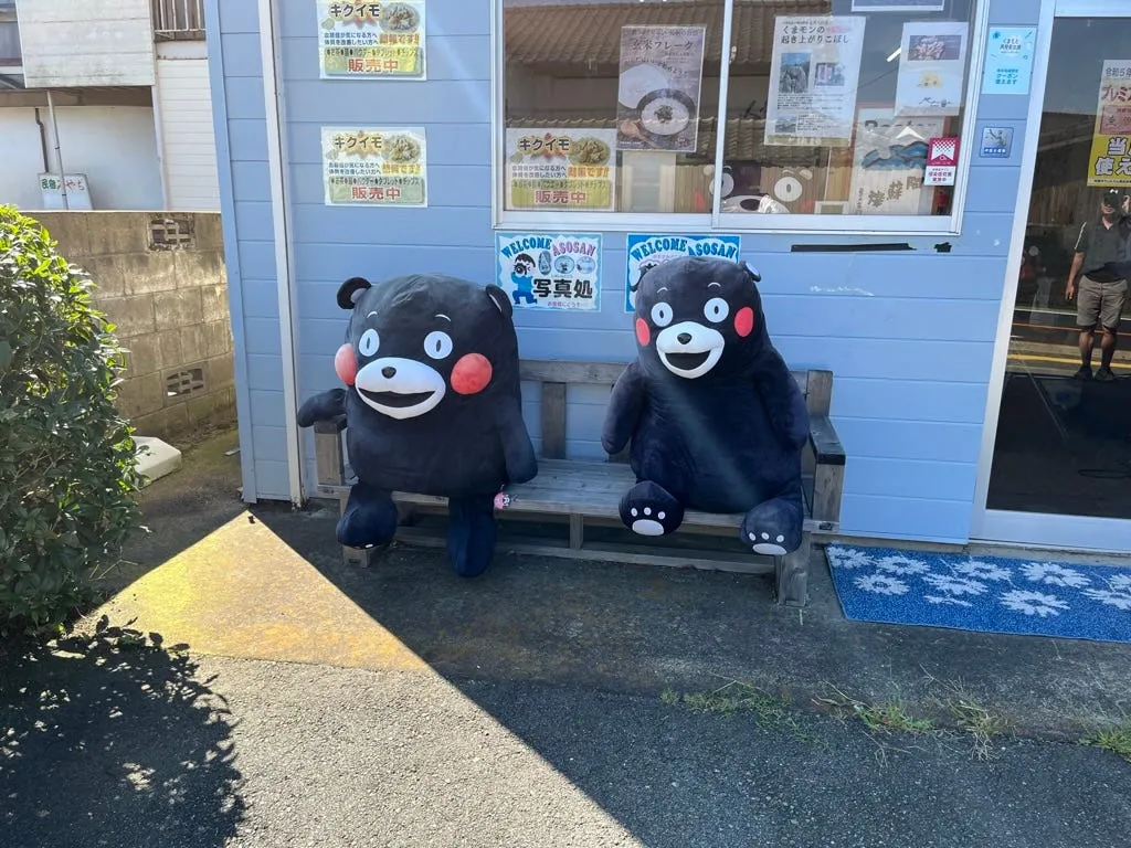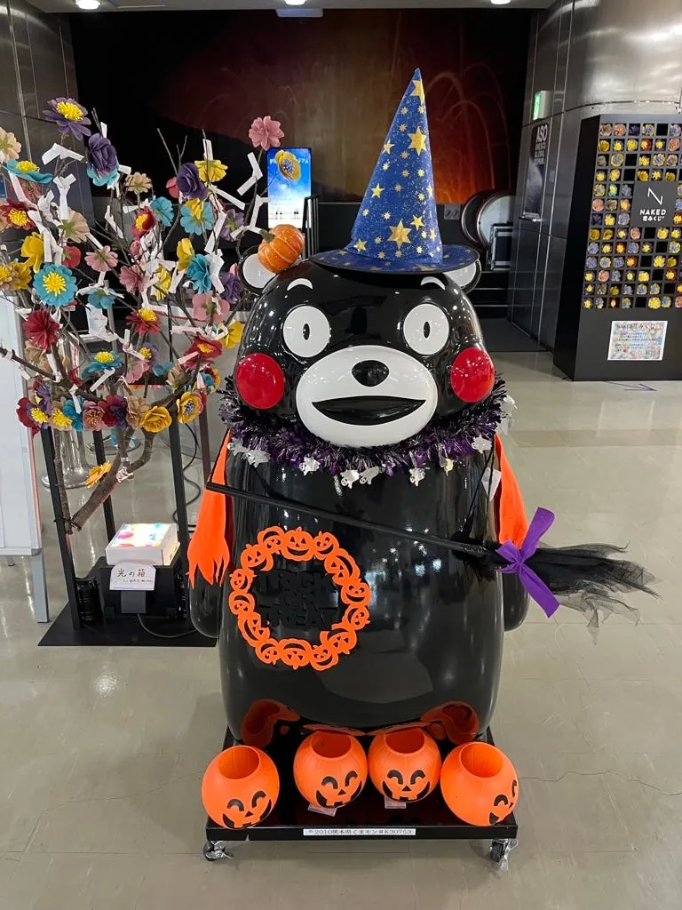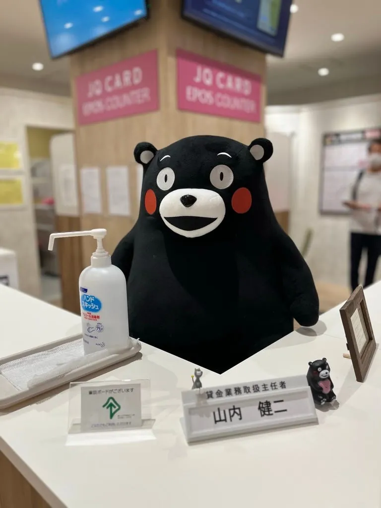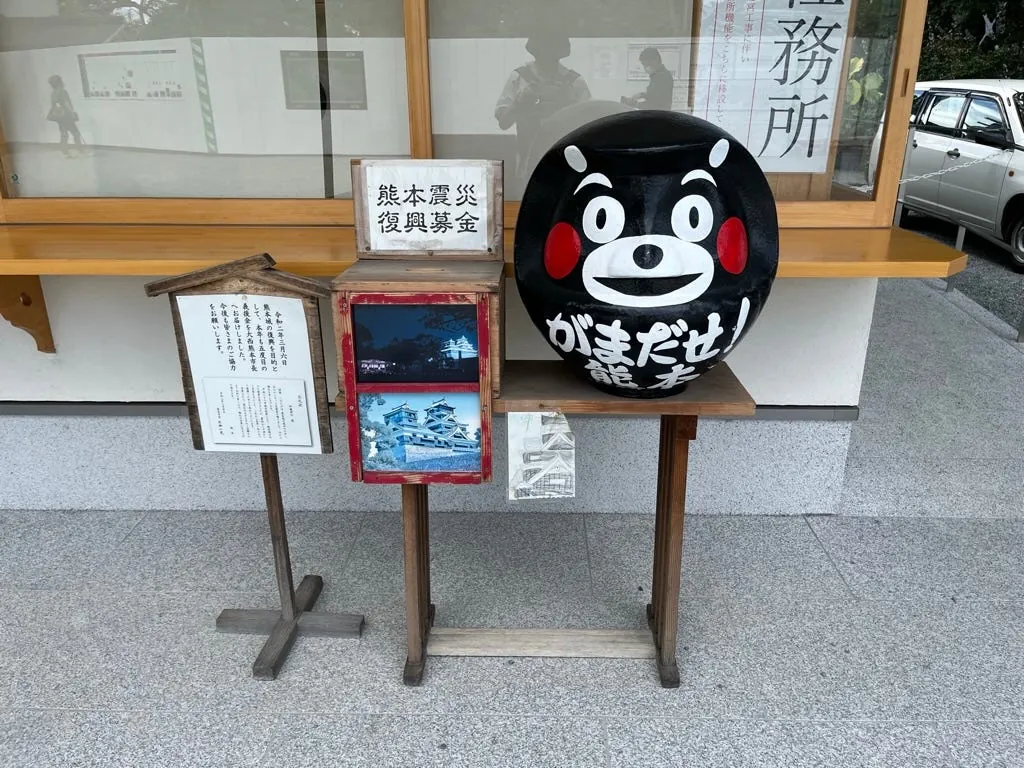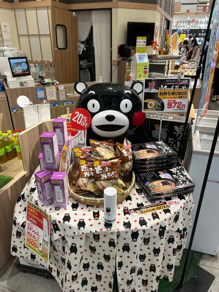 九州(熊本だけでなく)どこにでも熊本県のくまモン部長の痕跡があります。