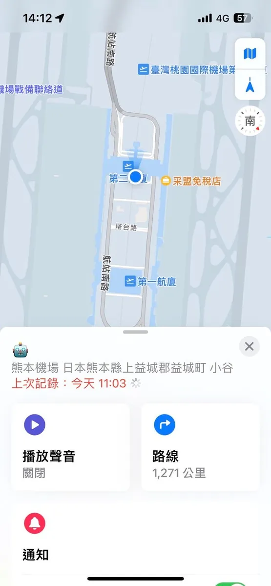 荷物を受け取るとき、早く預けすぎたためか少し待ちました。その間に Airtag の追跡機能を試してみたら、荷物が近づくと通知が来ました!