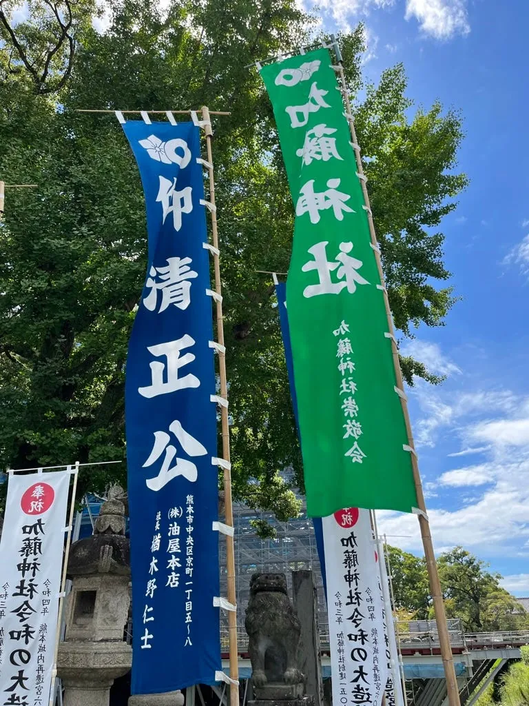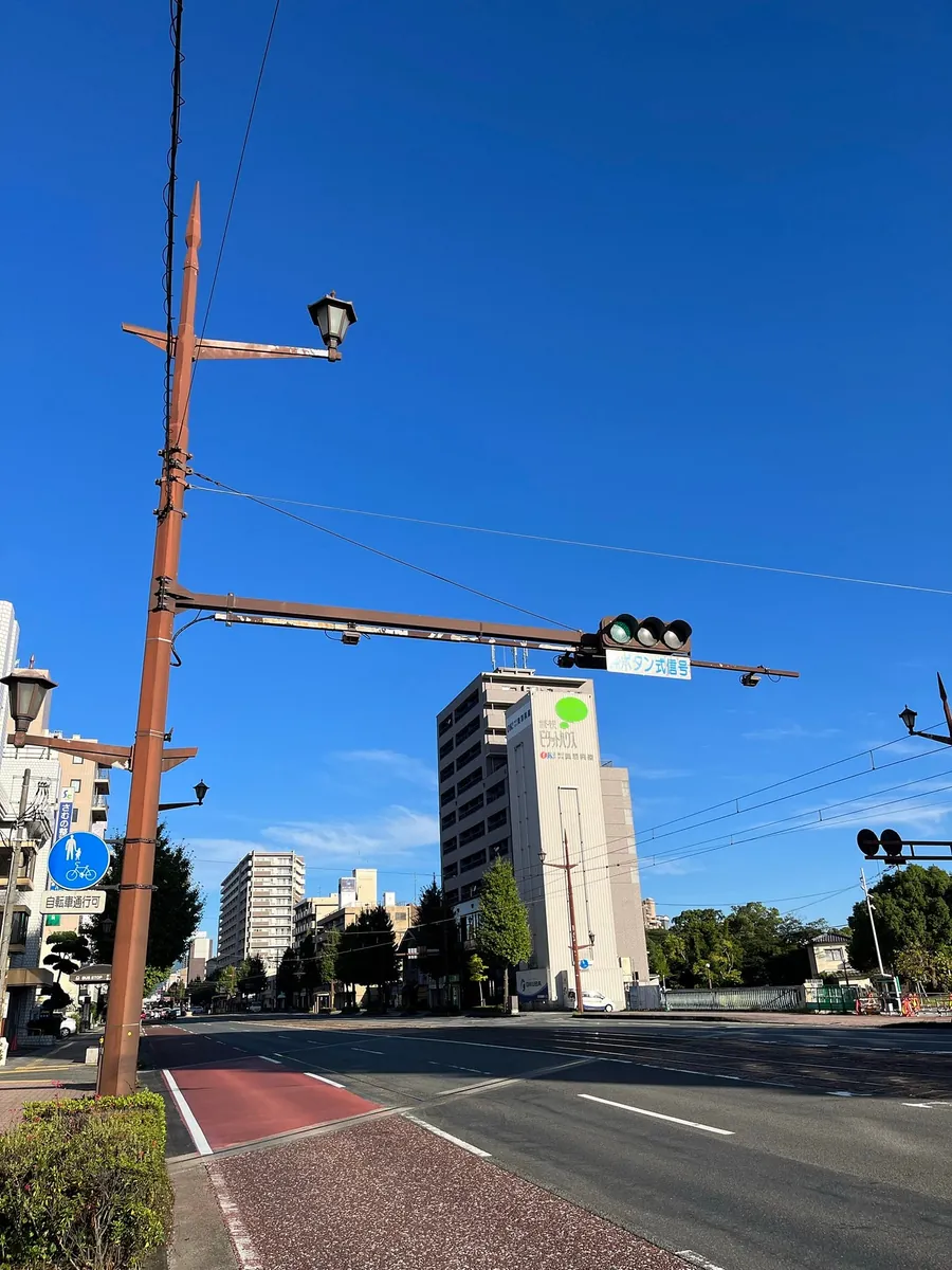 来た道を戻り、熊本市役所(14階に無料展望台あり)へ向かいます。加藤神社までは距離があるので、バスを利用すると便利です。