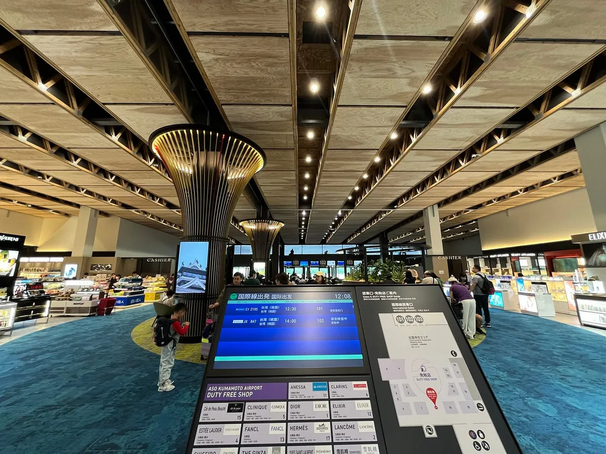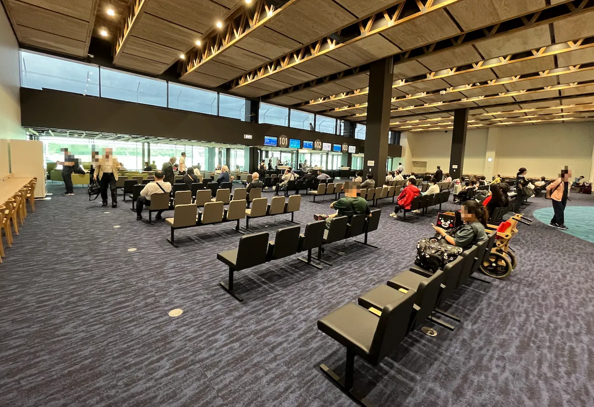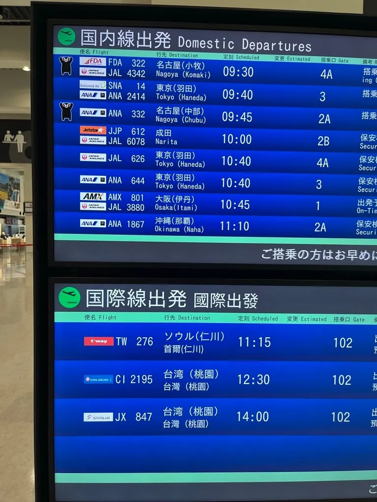阿蘇熊本空港(KMJ)はとても新しくて小さいです。便数も多くありません。国際線は本日3便だけで、カウンターも3つしかなく、すべてが順番に使用されています。
