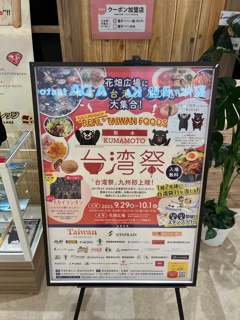 櫻町ショッピングセンターで買い物をし、再び宮崎牛と熊本産のビールを味わいました。帰るときに熊本熊の大福を一つ買って台湾にお土産として持ち帰りました(かわいい)。