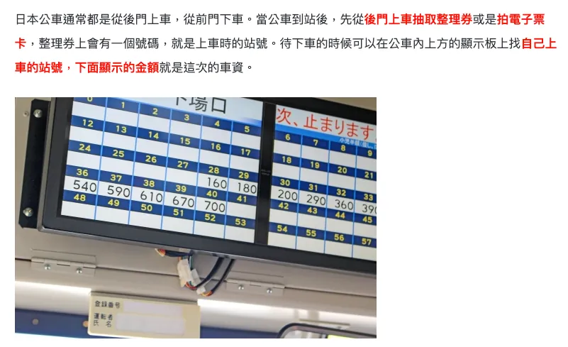 日本のバスは乗客を待ちます。乗る人が座るまで待ち、降りる人が降りるまで待ちます。そのため、停留所に着いてから立ち上がればよく、まだ着いていないのに前に詰める必要はありません(台湾とは違います)。