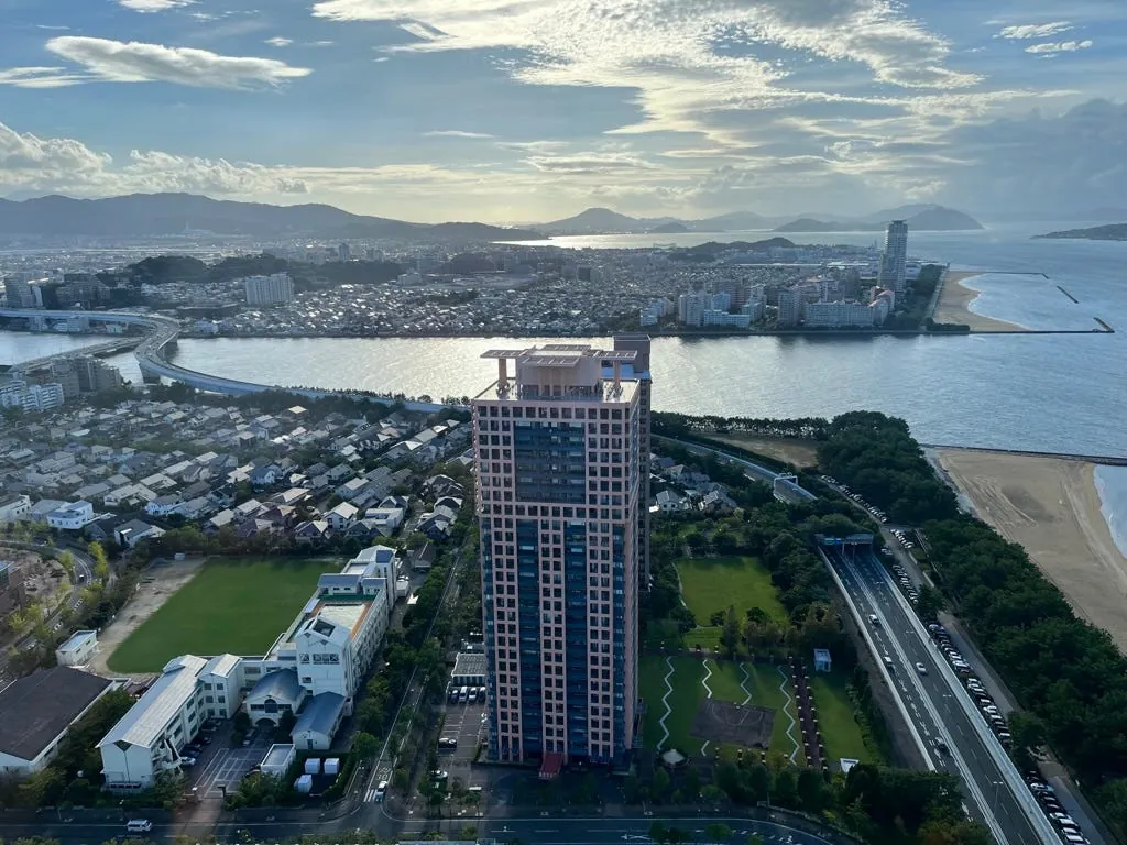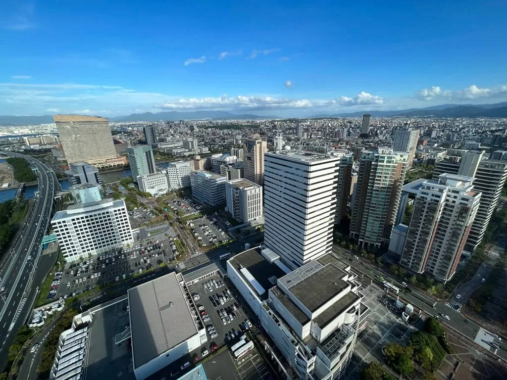 朝早にベッドの外から見た福岡市街の景色。