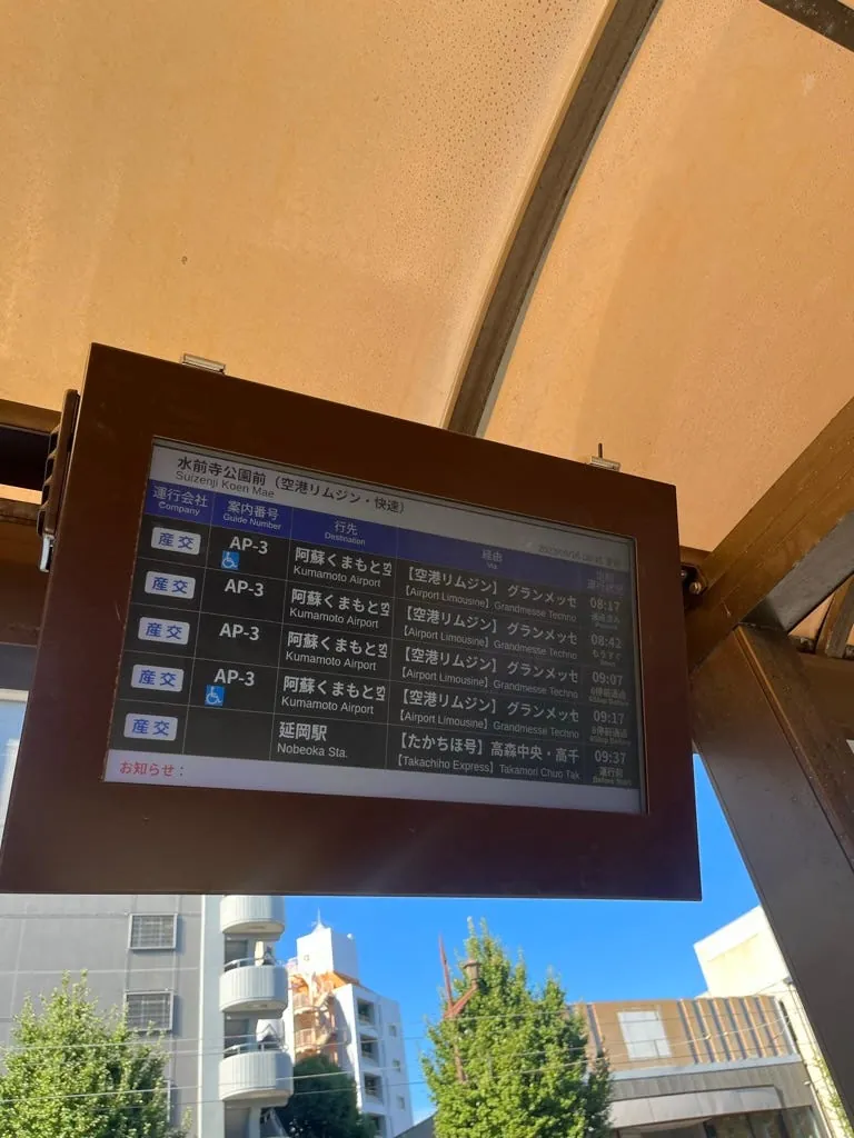 交通:JR熊本駅から豊肥本線に乗り換え、路面電車に乗れば(市立体育館前駅)に到着します。帰りの空港への交通も便利で、駅を出ると空港直行バスが熊本空港まで運行しています。