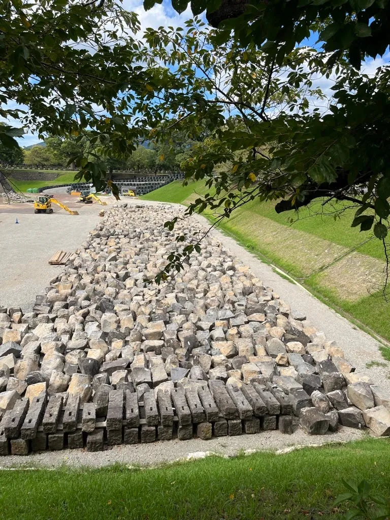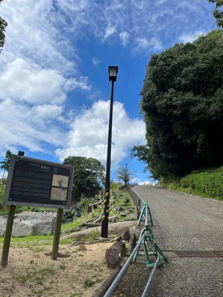 この坂を上って曲がると加藤神社です。初日に天守閣から見た、修復中の場所や、まだ復元が必要な散在する城壁も見えます。