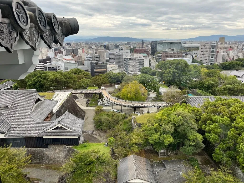 熊本市役所の14階からは、熊本市全体と熊本城を一望できます。