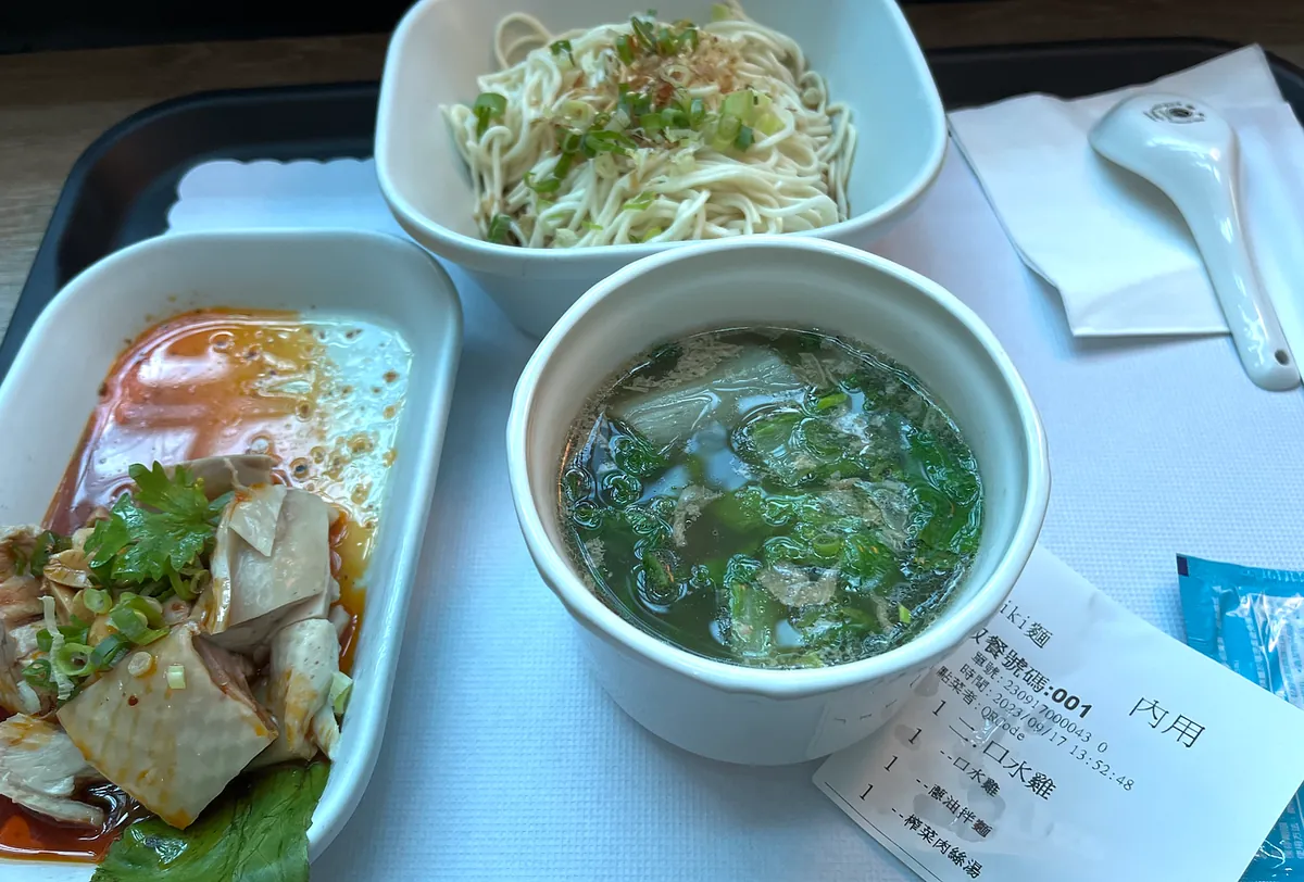 適当に高くて普通のよだれ鶏を食べて、ついでに荷物の位置を確認した;荷物も私と一緒に空港まで預けられていた。