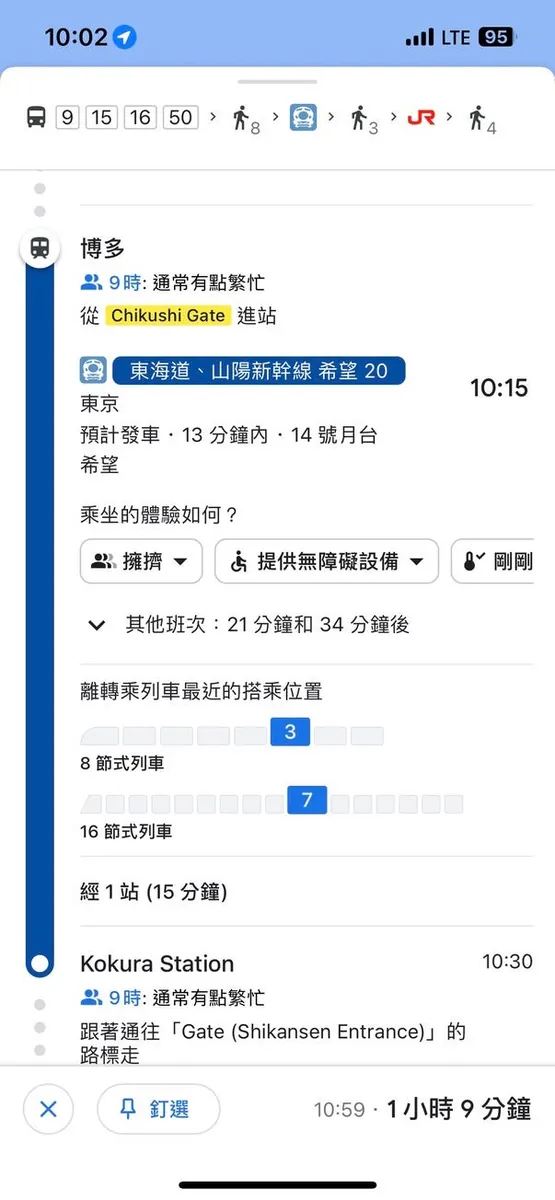 同じく実際に遅延があり、Google Mapでは通過済みと表示されていました。長崎での教訓と電子掲示板のおかげで、私は辛抱強く待ち続け、約10分遅れてようやく電車が来ました。
