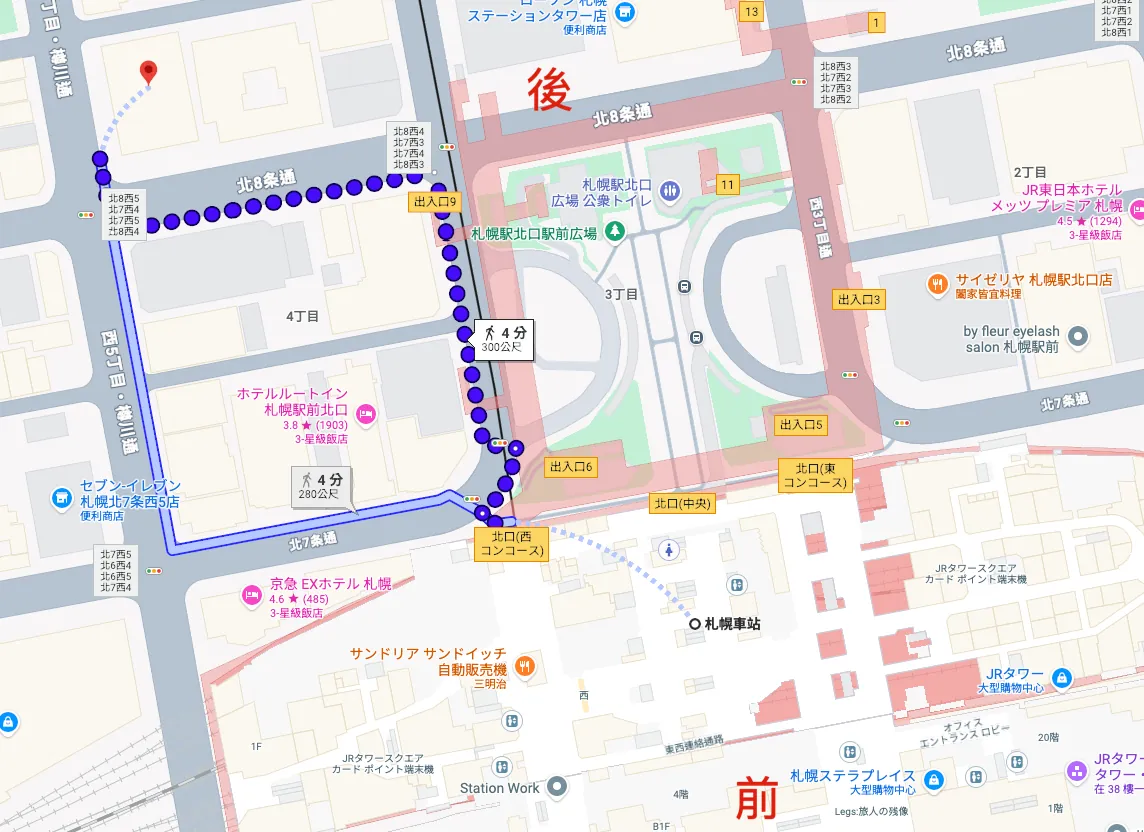 札幌駅の裏口から徒歩約5分の場所にあります。