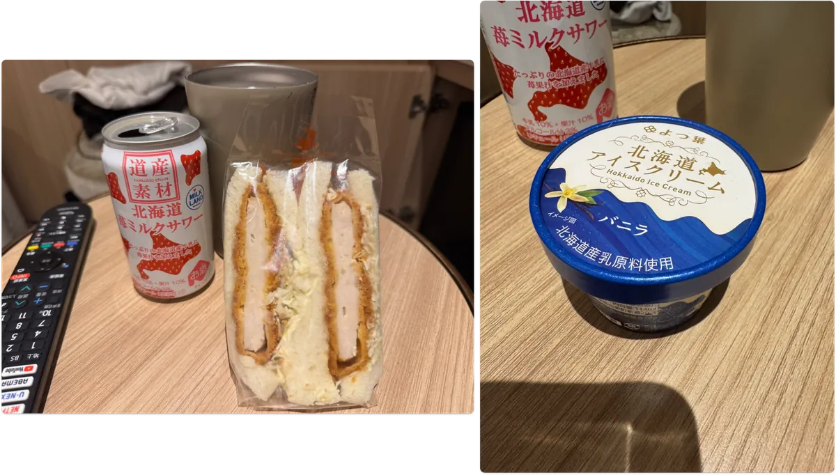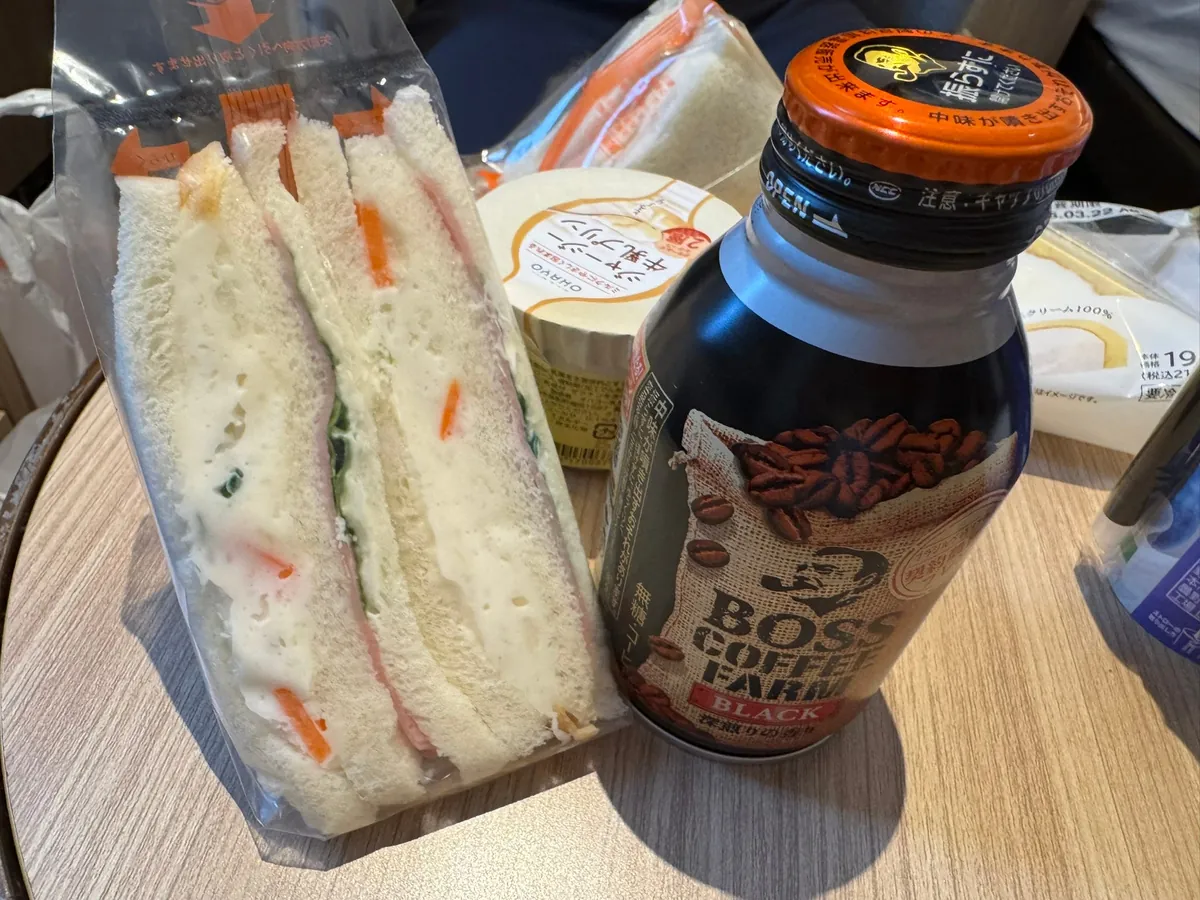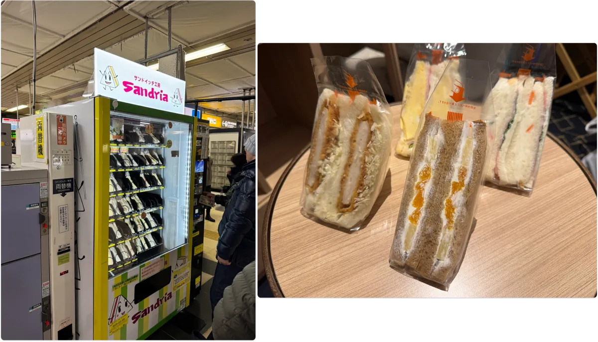 ホテルに帰る途中、毎日通るJR駅で多くの人が並んでいるサンドイッチの自動販売機で買いました。