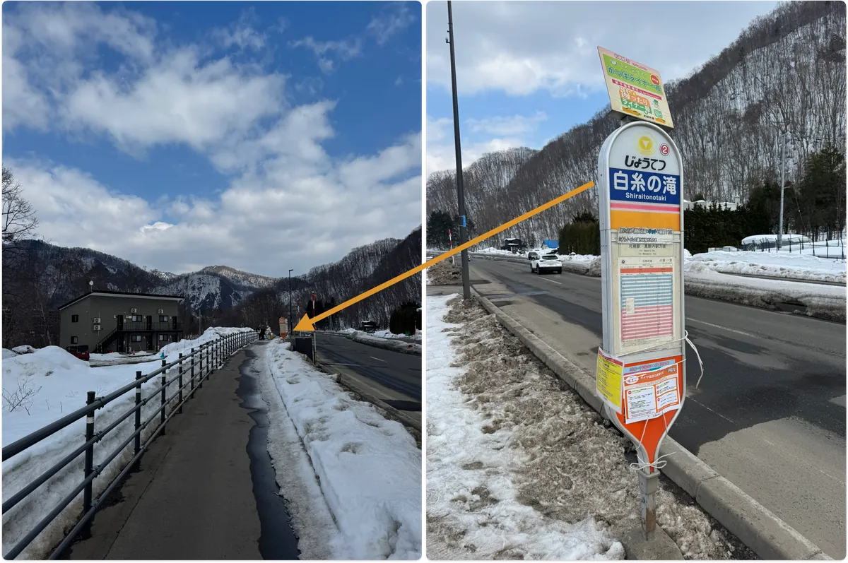 私たちのホテルは (2) 白糸の滝/Shiraitonotaki に近いため、ここで降りる予約をしました。