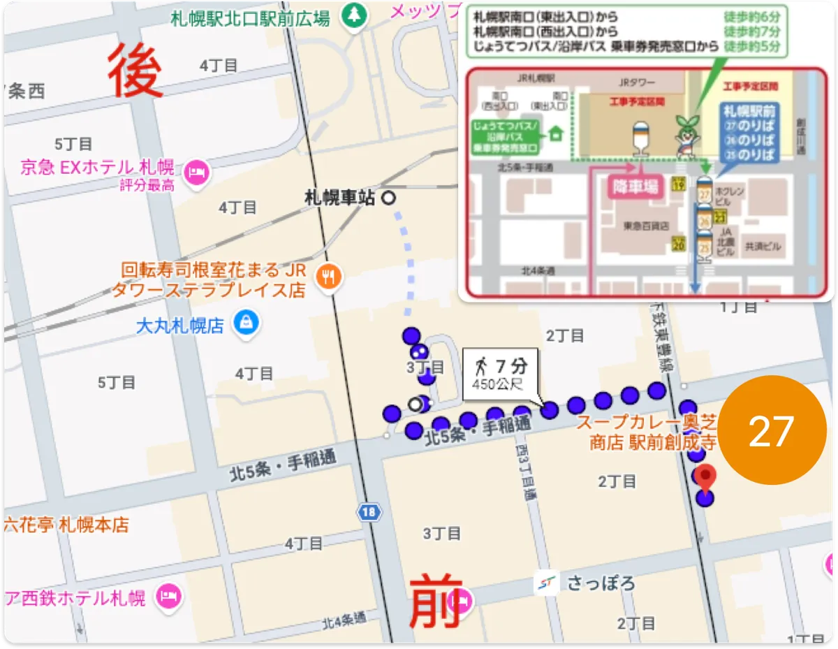 15:25 到着 札幌駅 27番のりば (Kappa Line乗車場所) 待機