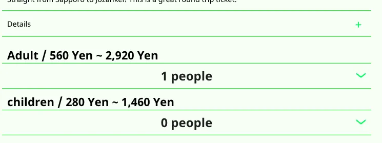 - 帰りの日付と便(便の時間は出発駅基準)、乗降場所を選択してください