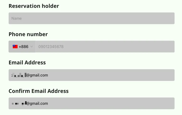 Email / 台湾の携帯番号はOK。