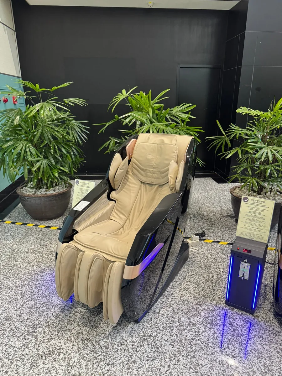搭乗まで少し時間があるので、先にD1の無料マッサージチェアに座る(トークンは近くの店舗で受け取れます) 。