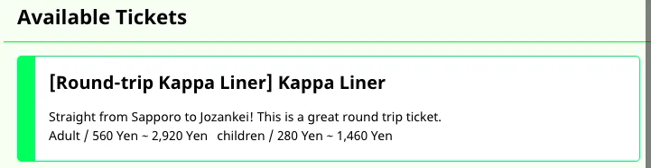 - かっぱライナー号 / カッパライナー / Kappa Liner の往復または片道を選択する