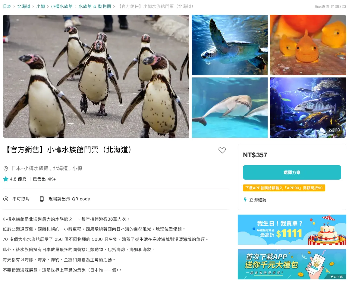 KKday — 【 公式販売】北海道小樽水族館入場券(購入後すぐ利用可能/購入から30日以内に使用可)