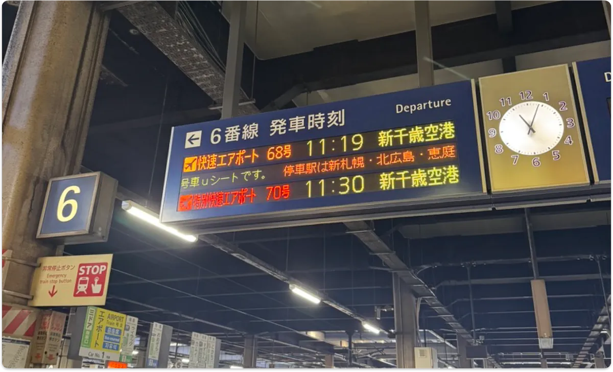 11:19 札幌駅から新千歳空港へ出発