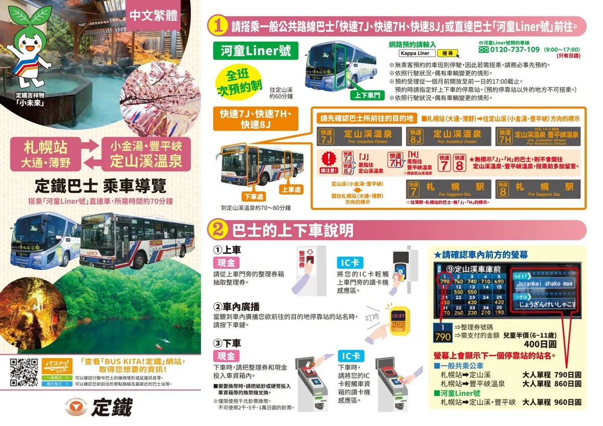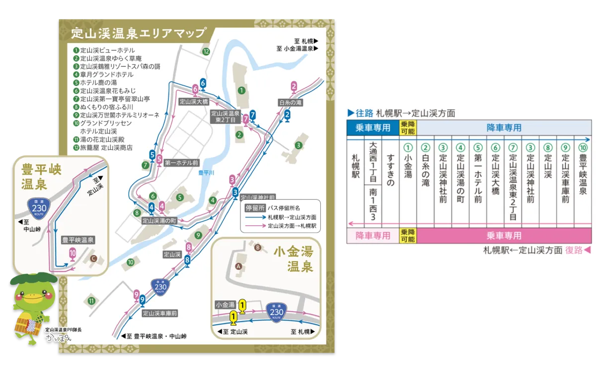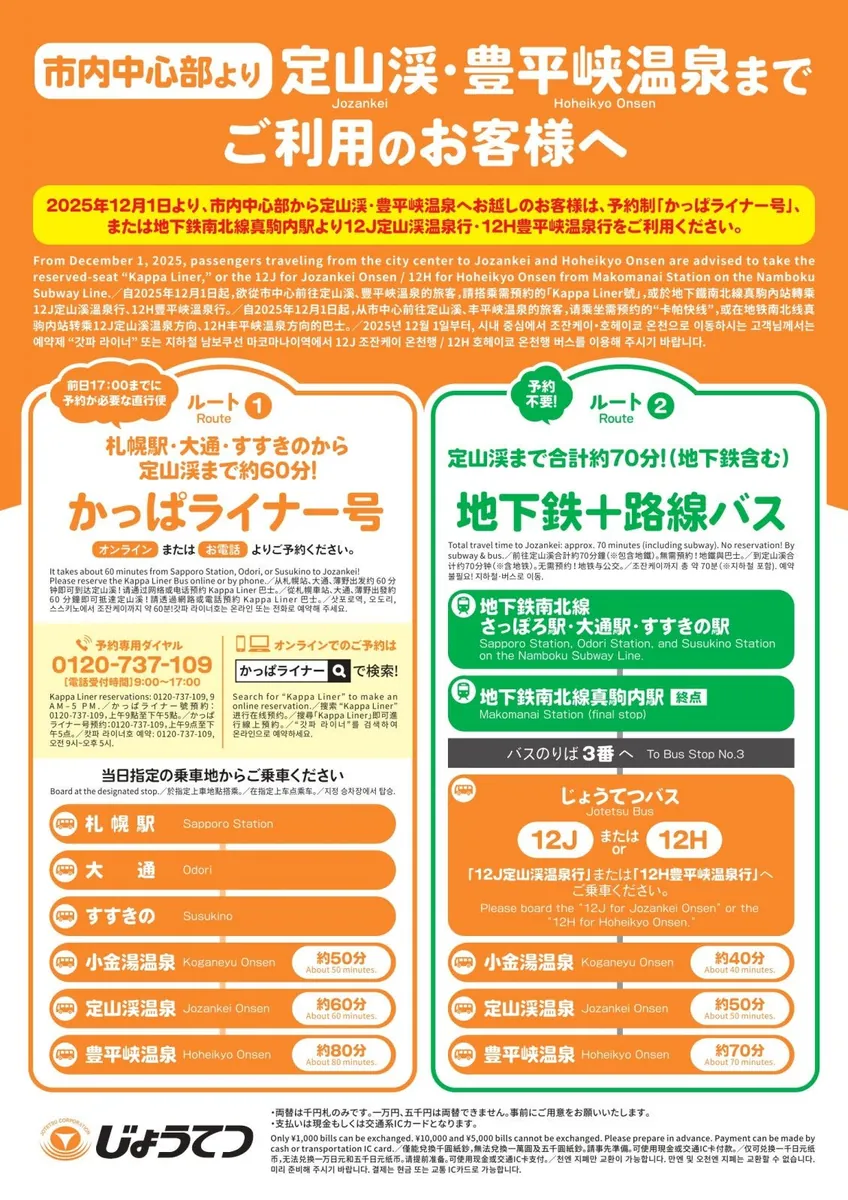 [要予約] [約60分] 札幌駅 → Kappa Linerバス乗車 → 定山渓温泉。