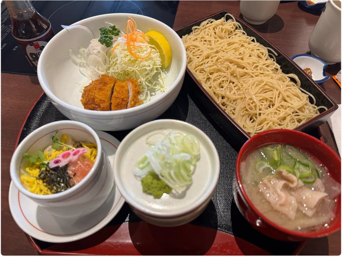 昼食はデパートのバラちらし寿司とそばを適当に食べました。