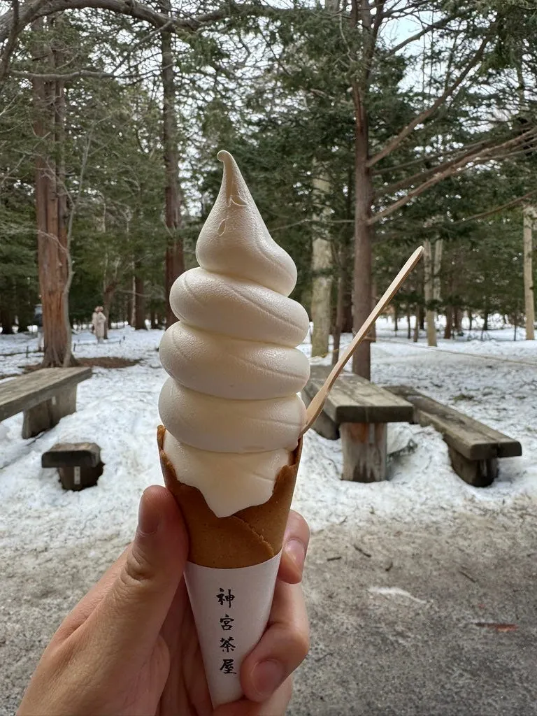 歩いて行くと神宮茶屋を通り過ぎるので、まず北海道ミルクのアイスクリームを食べに行きます。