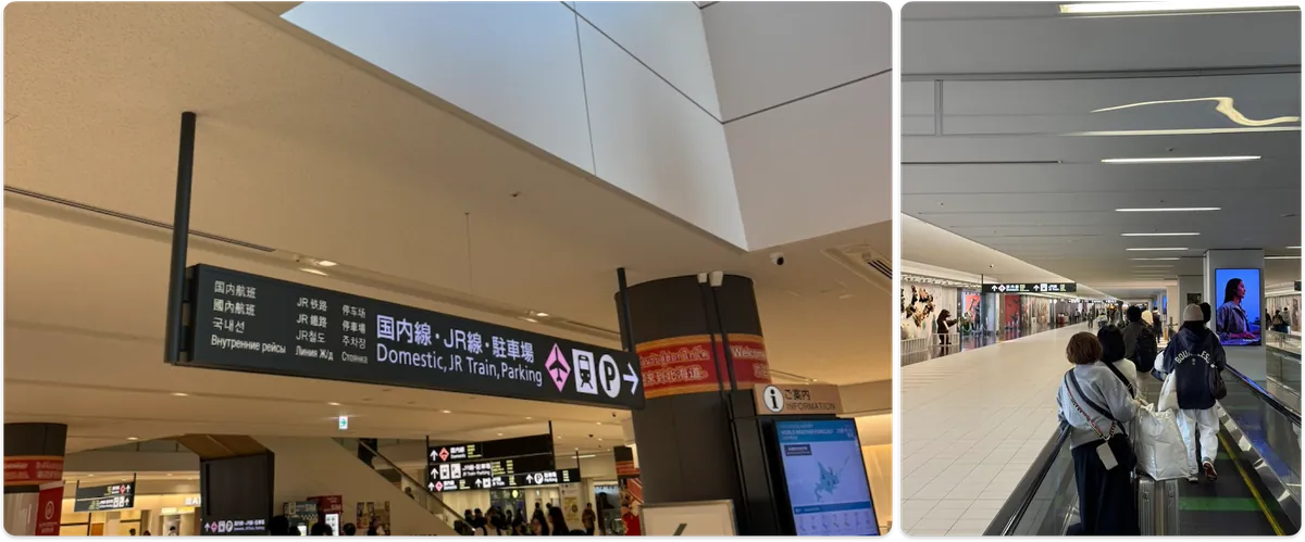 空港を出たら、「国内線、JR線」の案内表示に従って進みます。