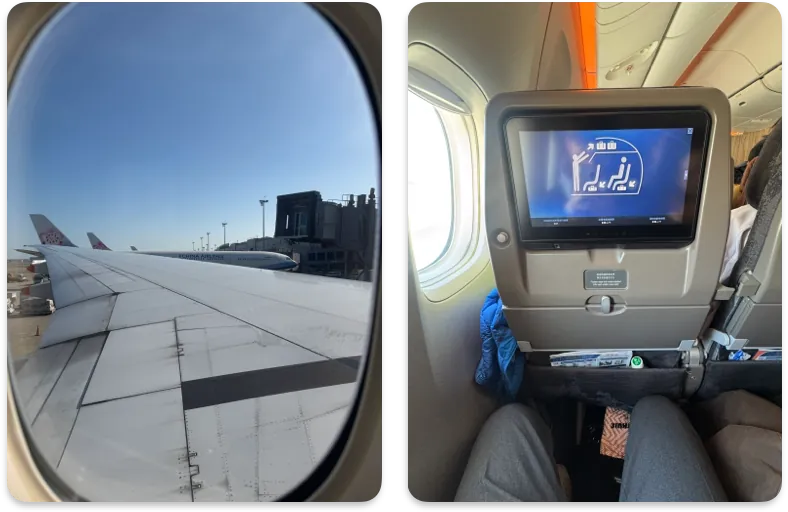 乗ったのはチャイナエアラインの比較的新しい飛行機、Airbus A330–300で、スペースが広く、テレビのエンターテインメント設備も充実していました。