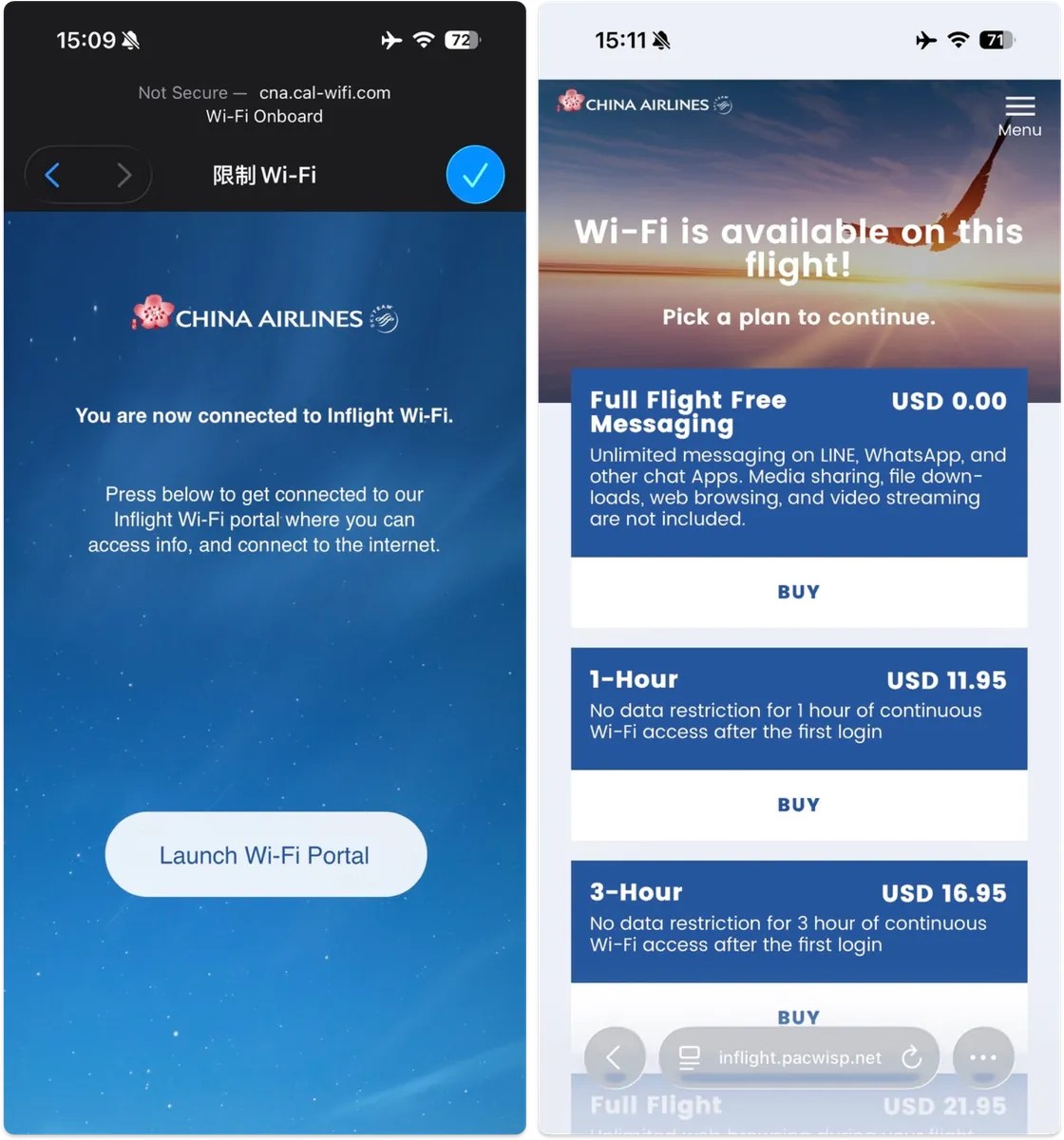 このフライトではチャイナエアラインが全行程でインフォメーションWiFi機能を提供しており、友達とメッセージをやり取りできます。