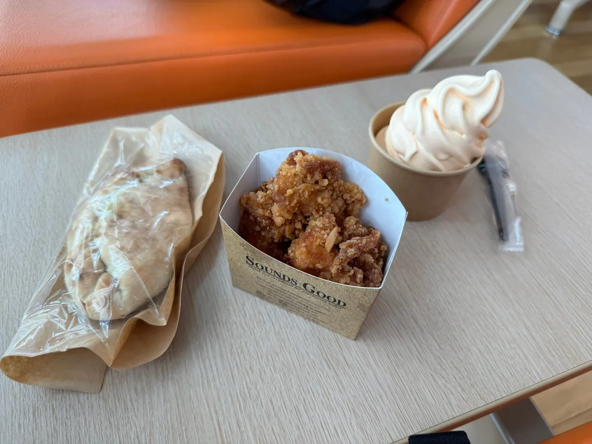 美味しい屋台街があり、私はパン、唐揚げ、メロンアイスクリームを少しだけ買って食べました。