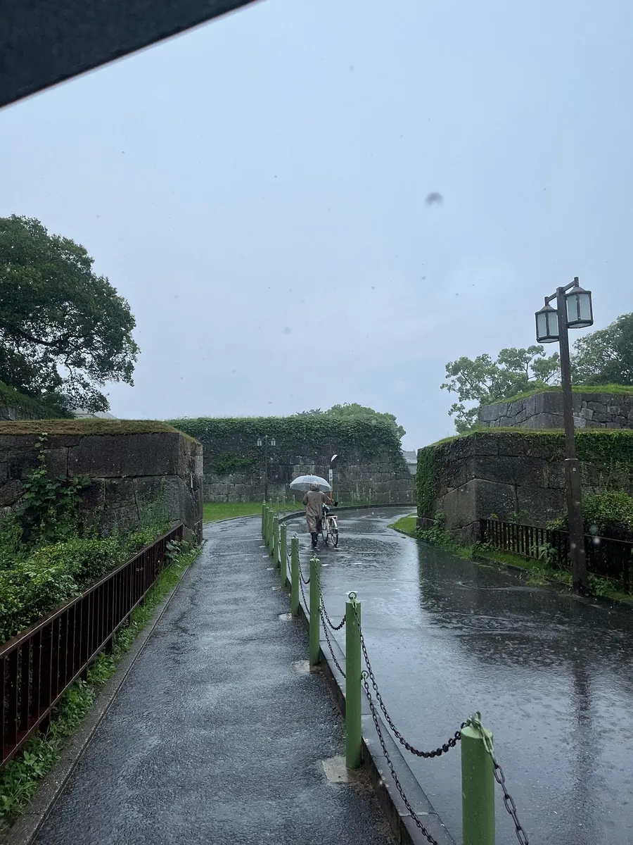 駅を出ると外は大雨が降っていて、日本で雨が降るとは予想しておらず、傘を持っていませんでした。近くにコンビニも見当たらず、名古屋城駅の地下街から向かいの名古屋市役所の地下1階にあるファミリーマートを見つけ、傘を買って名古屋城へ向かいました!