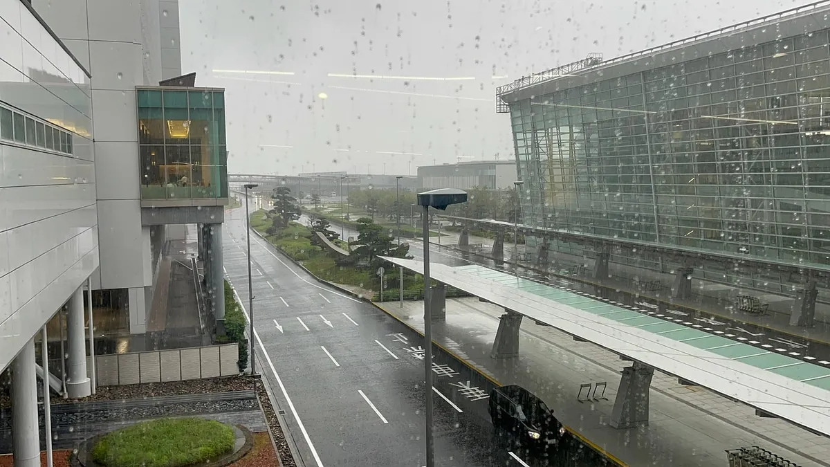 早朝かつ手荷物受取が不要だったため、飛行機の着陸から入国までに15分もかかりませんでした。しかし、天気は味方せず、名古屋は大雨が降っていました。
