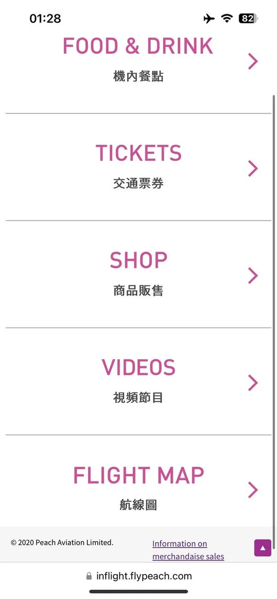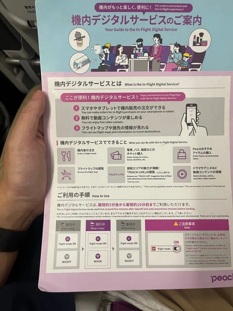 目が覚めて機内設備を調べてみると、フライト情報やエンターテインメント動画は、機内WiFiにスマホで接続すれば確認でき、機内食の注文もスマホで直接できることがわかりました。