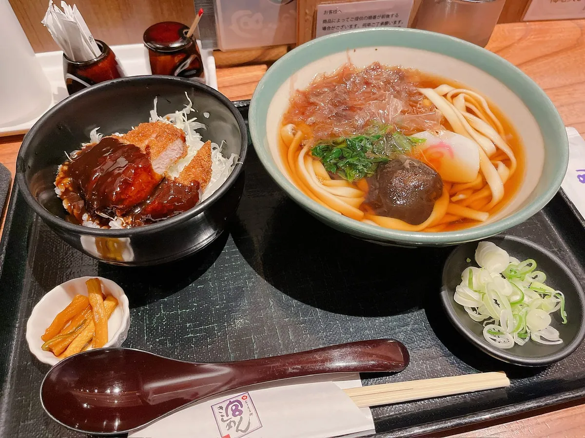 夕食は空港の名古屋うどんを食べました。名古屋の特徴的な麺は平たいです。