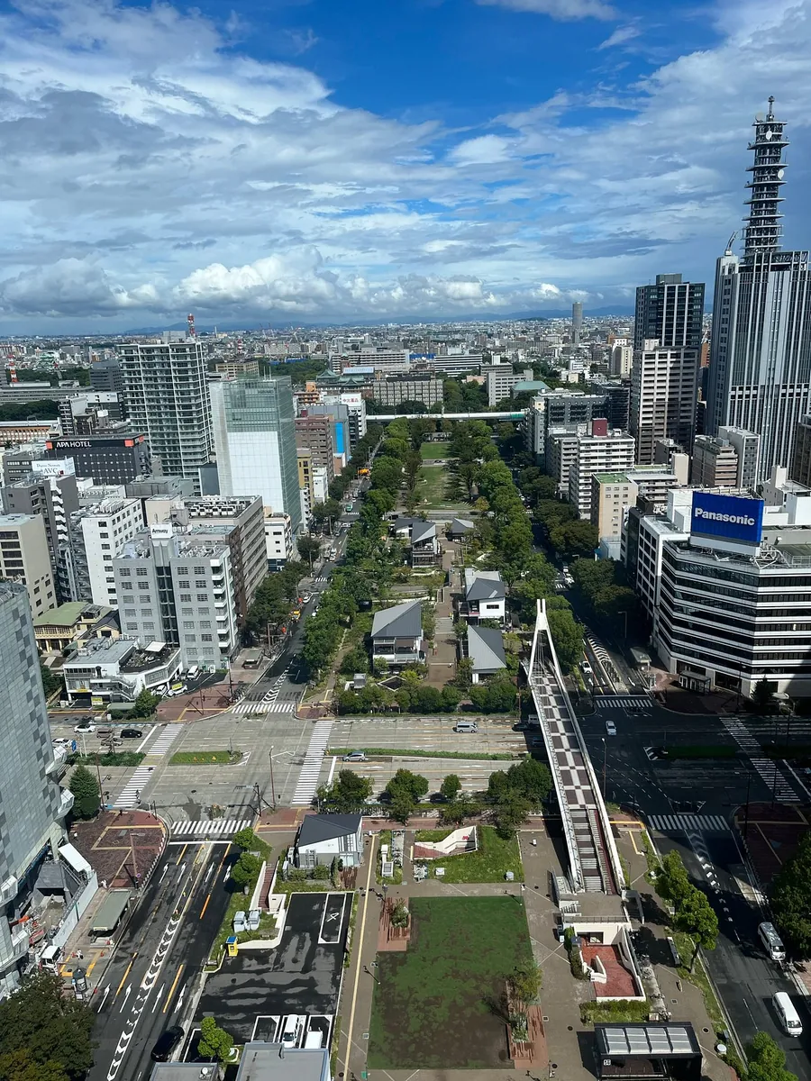 地下街を一周した後、JR GATE TOWERへ向かい、15階のスターバックスに上がると、無料で景色を楽しめます。