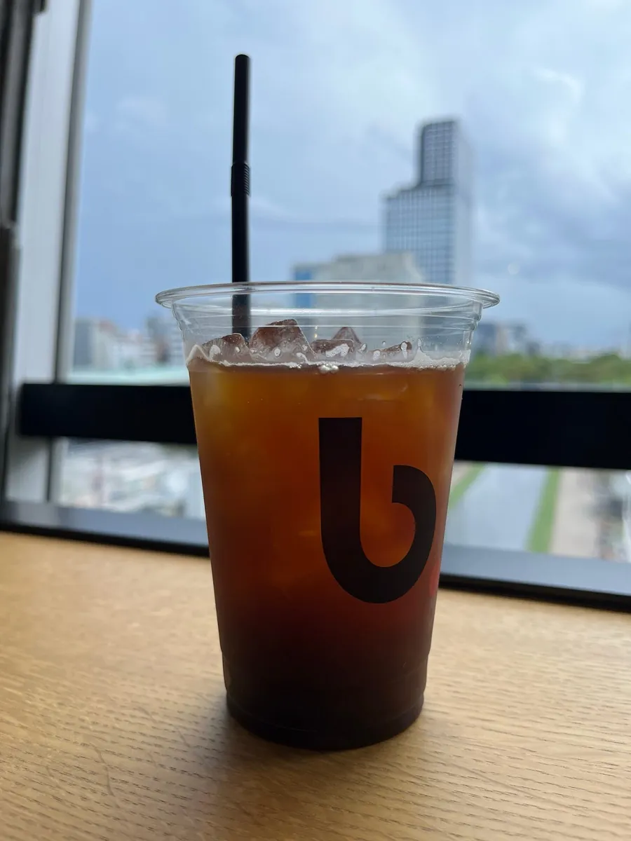 雨のため外の席は利用できず、店内の席は満席だったので、コーヒーを買って座って休憩しながら景色を見ることはしませんでした。写真を数枚撮ってから、高島屋百貨店の下の階へと歩き始めました。下の階にはHarbsがありますが、並ぶ必要があります。