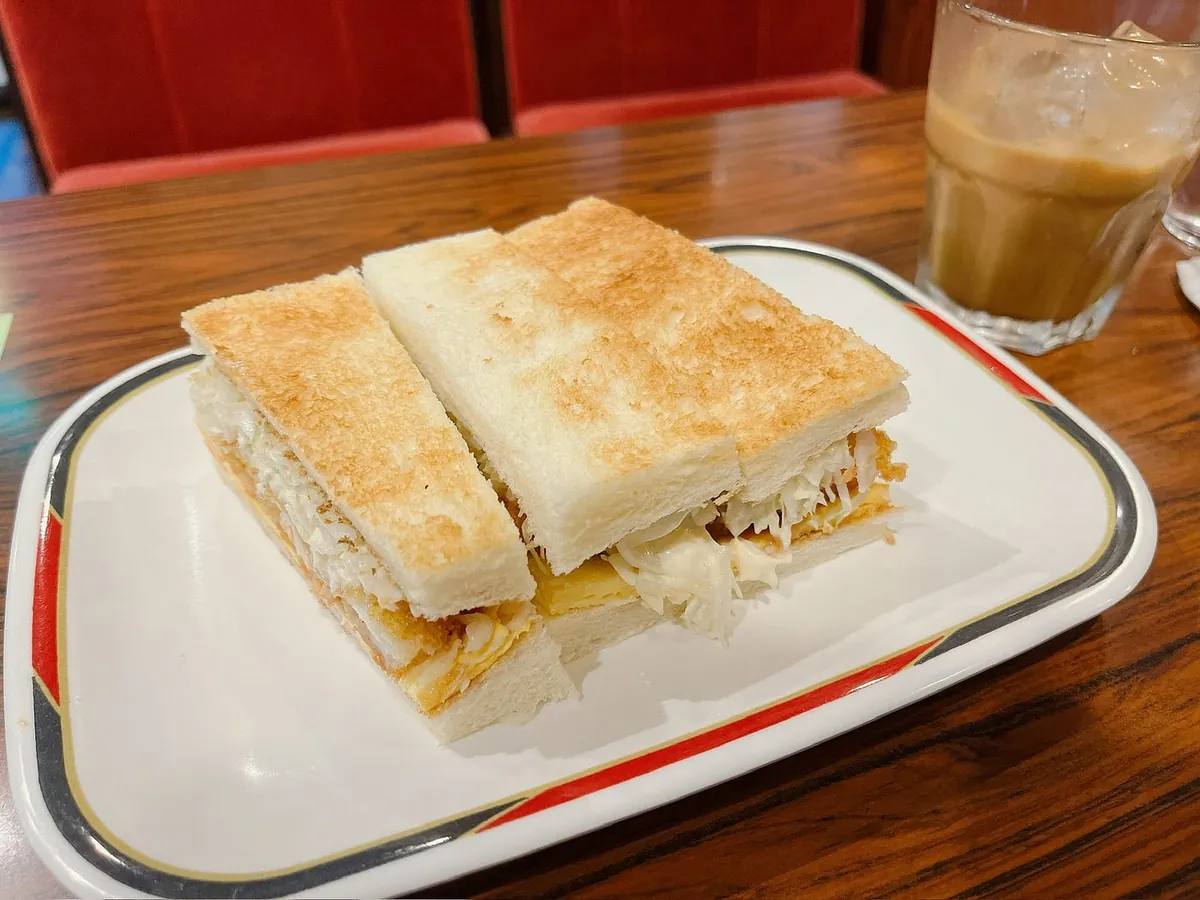 第1の目的地: Konparu Osu コンパル 大須本店 でエビフライトーストを食べる
