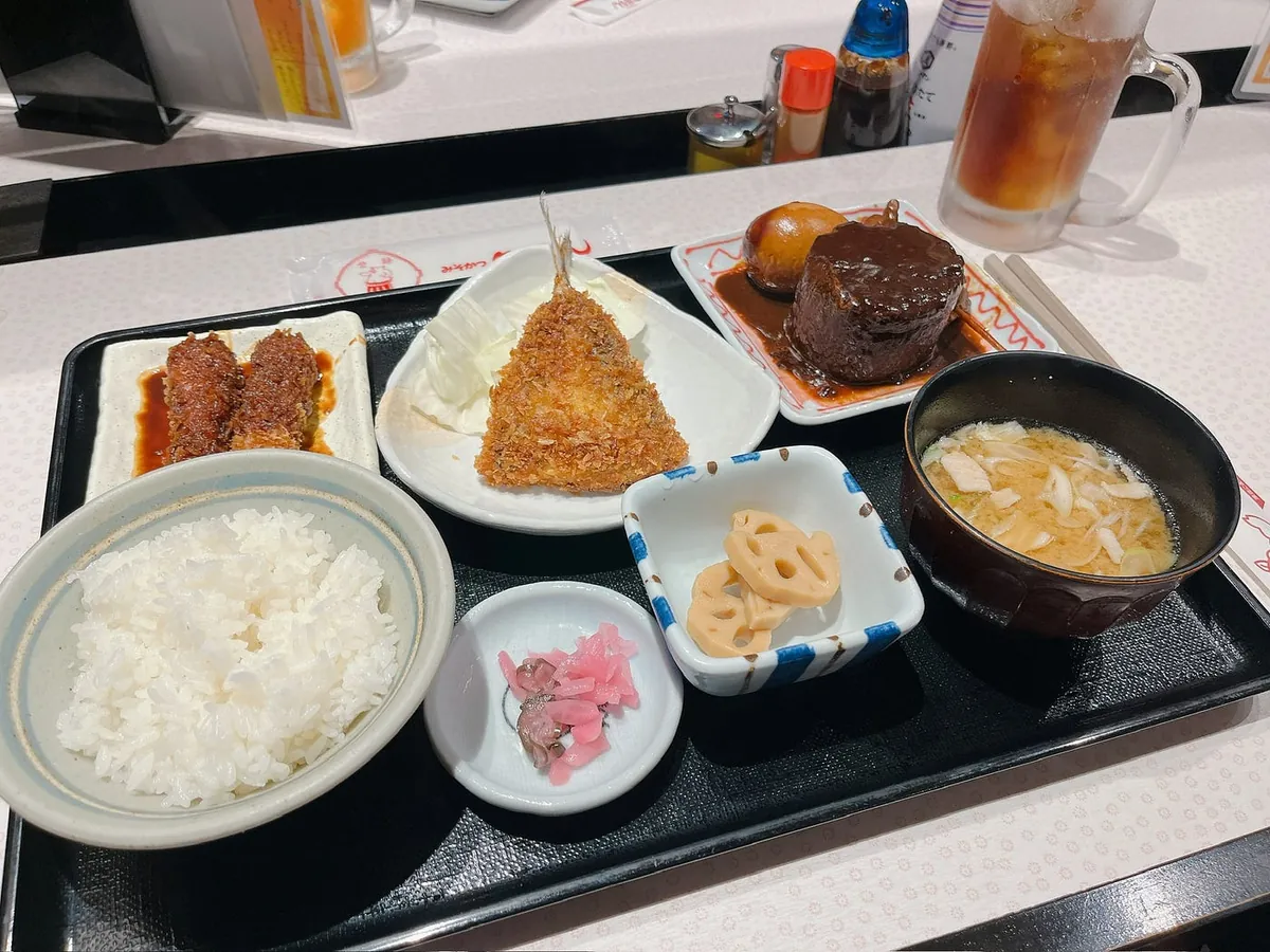 無難しくセットメニューを注文しましたが、間違えたかもと思いました。主に食べたかったのは左上の味噌カツです。セットメニューは味噌カツ+ししゃもフライ+佃煮+小鉢+汁物+ご飯です。味噌カツは美味しいですが、量が少なくて足りません!