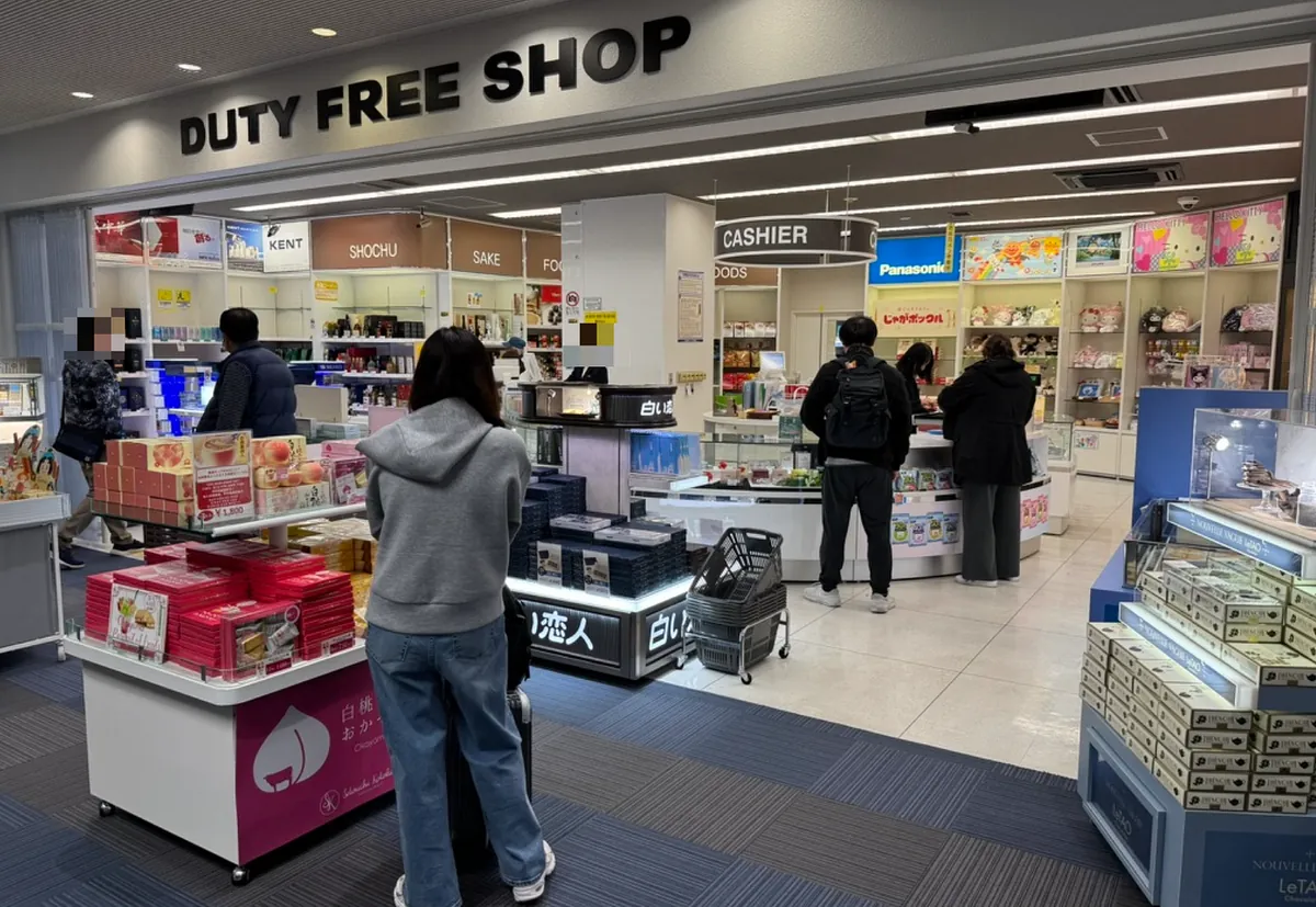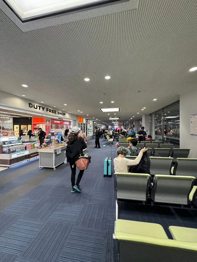 待合室はあまり広くなく、免税店が一軒だけあります。お土産やタバコ、酒類は種類が多くありません。