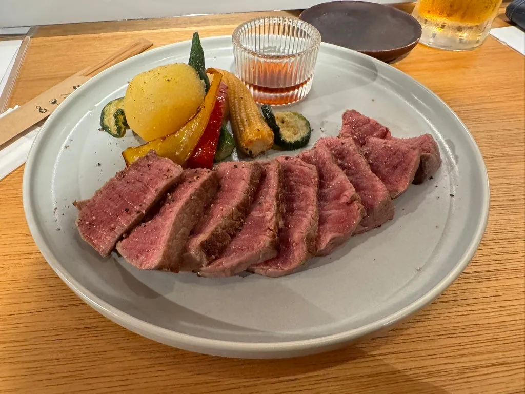 食べてみると本当に美味しく、とてもジューシーで肉の旨味がしっかりしていて、噛み切れないこともない;個人的には昨日の神戸牛にも引けを取らないと思う(私はお金持ちの運命ではないかもしれない)。