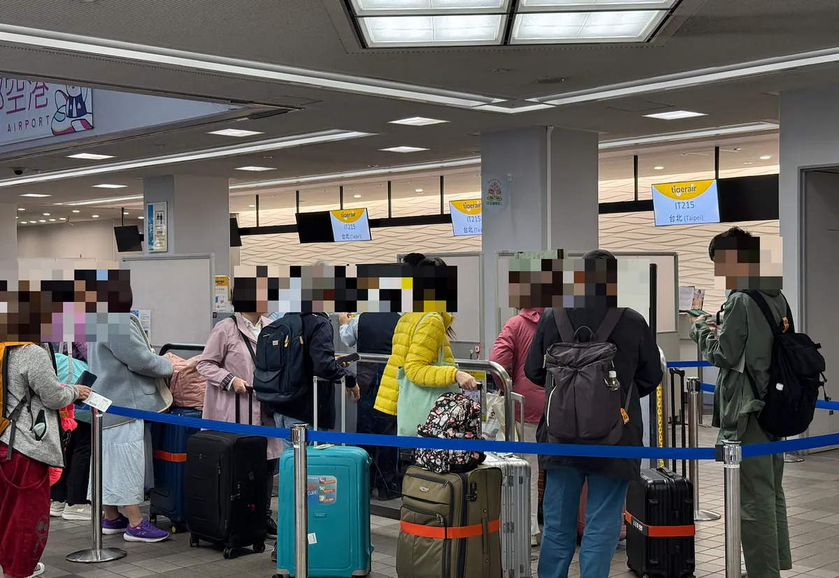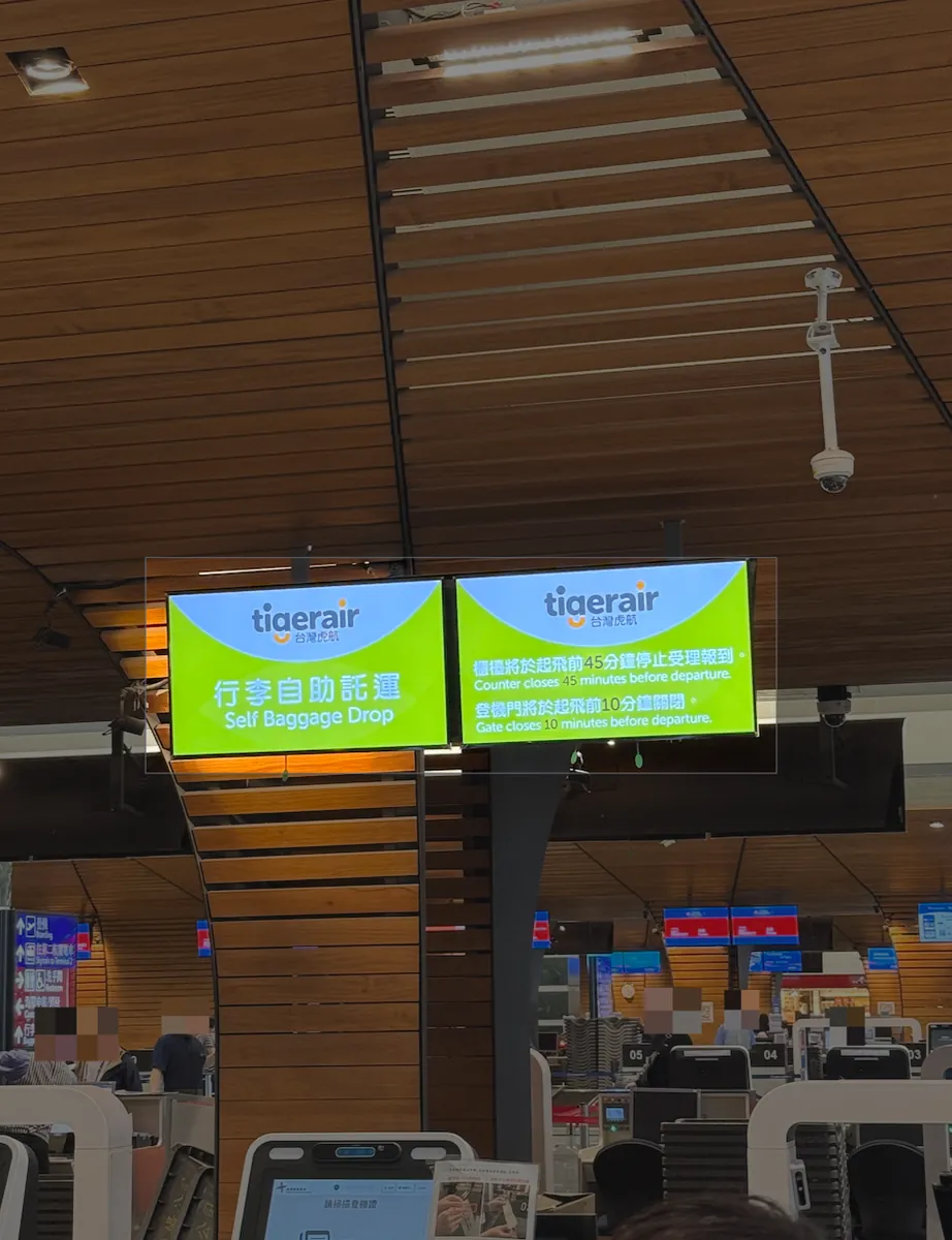 この時、まずTigerairのウェブサイトでオンラインチェックインをする利点がありました。当日、現地の「一般チェックイン」カウンターは長蛇の列で、10:20にはすでに満員で、少なくとも45分から1時間待つ見込みでした。「手荷物セルフチェックイン」は約15分以内で手続きが完了し、待ち時間を大幅に節約できました。