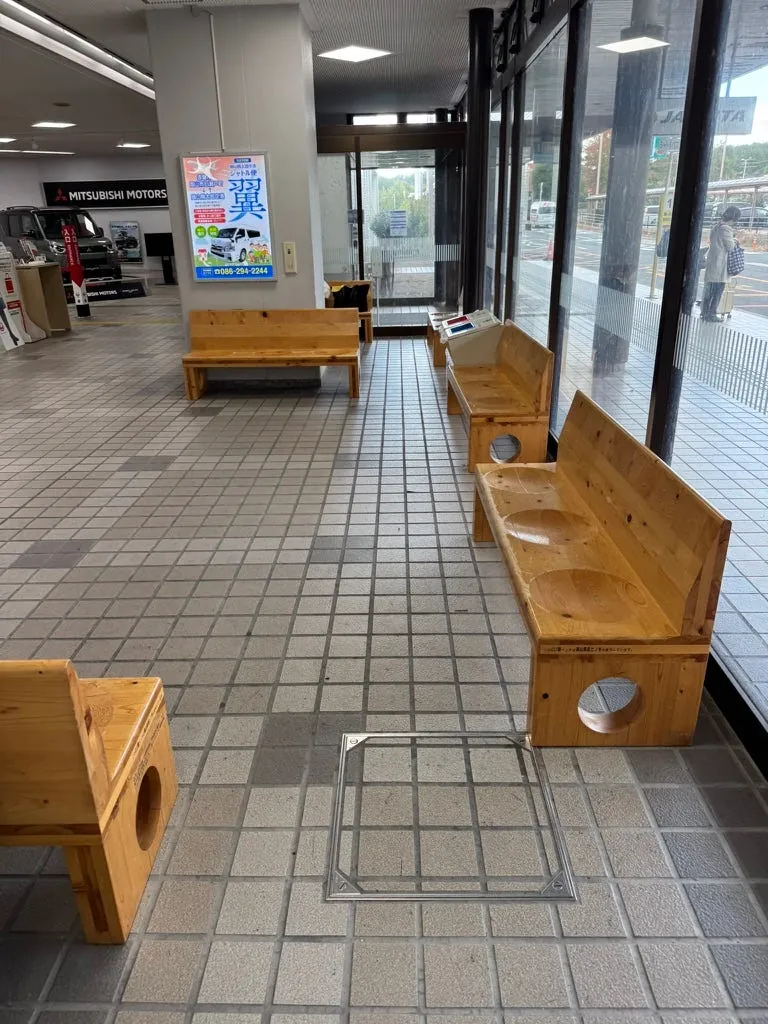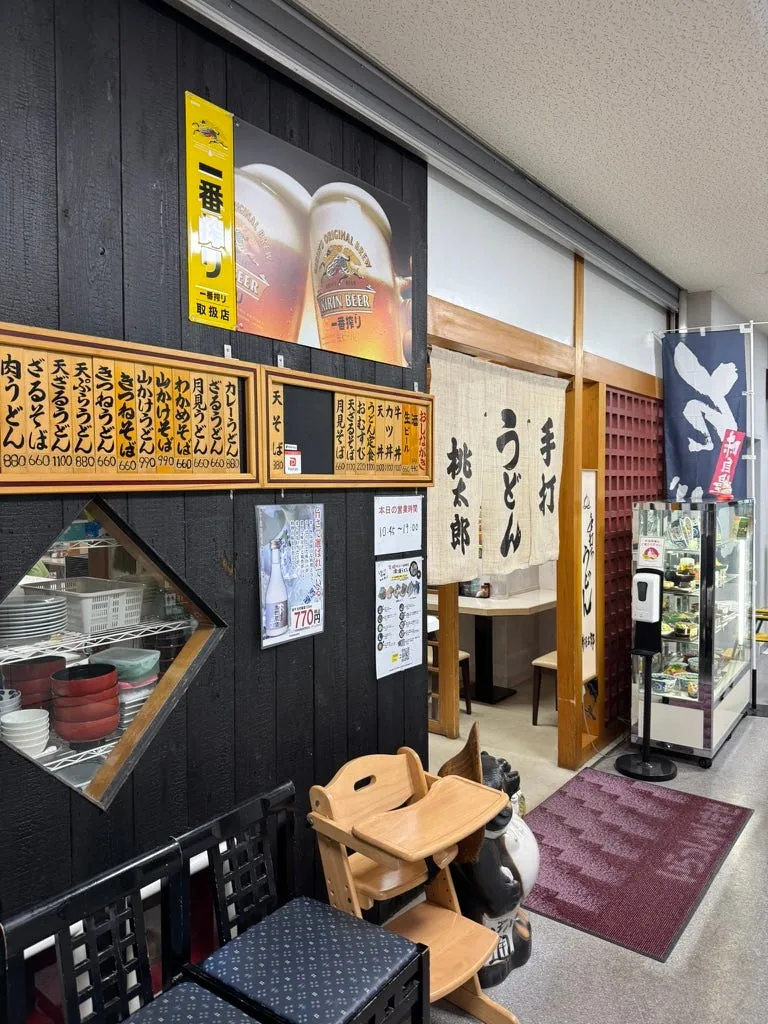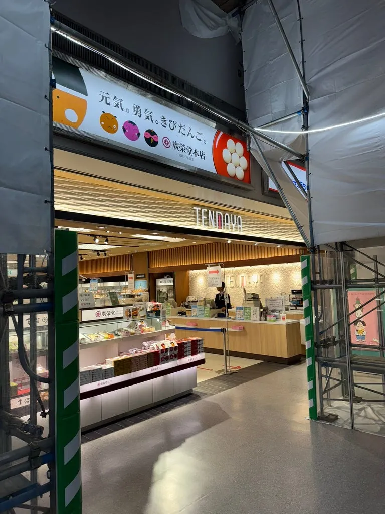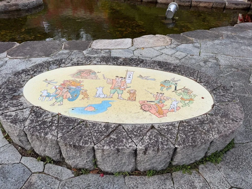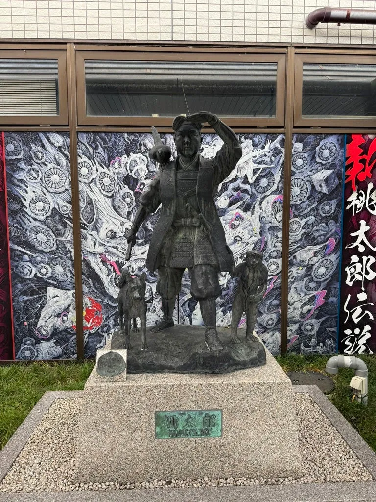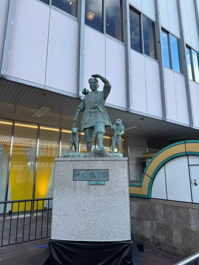 駅の外にも桃太郎の像があります。また、空港では保険の購入を温かく案内しており、今回は本当に自転車にぶつかりそうになりました。⚠️