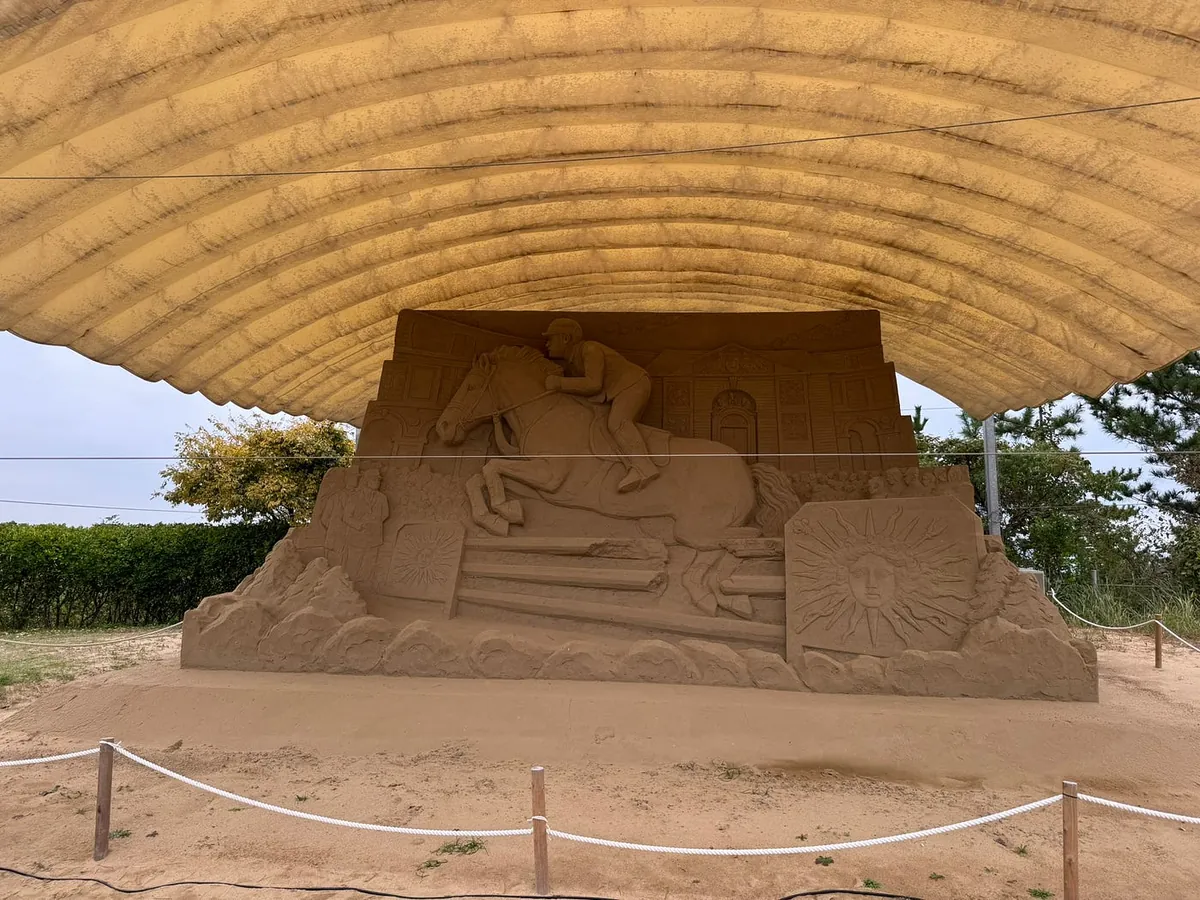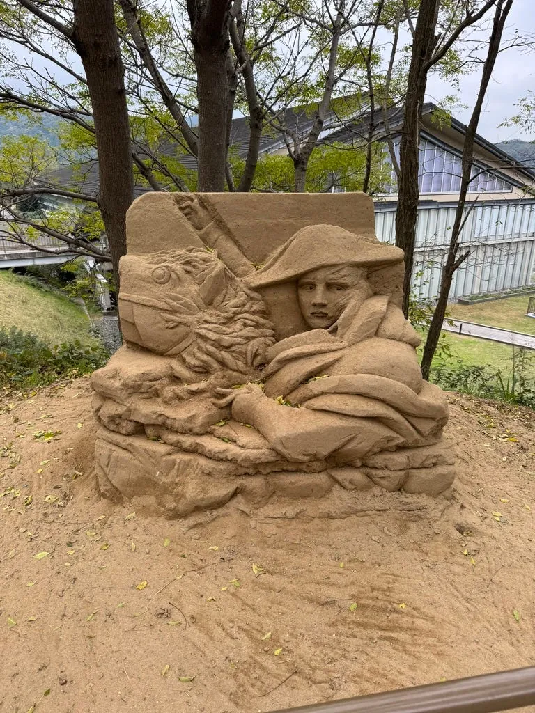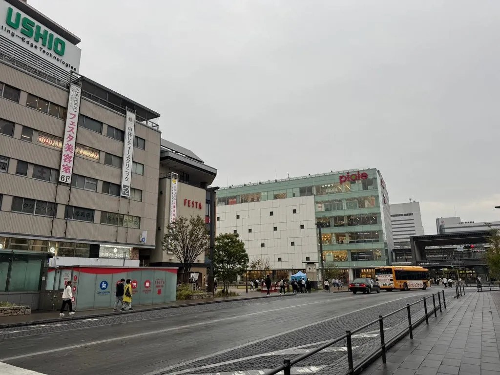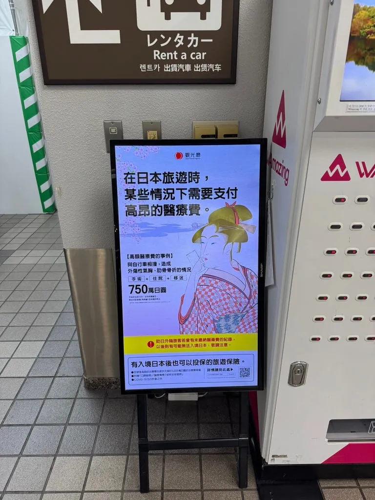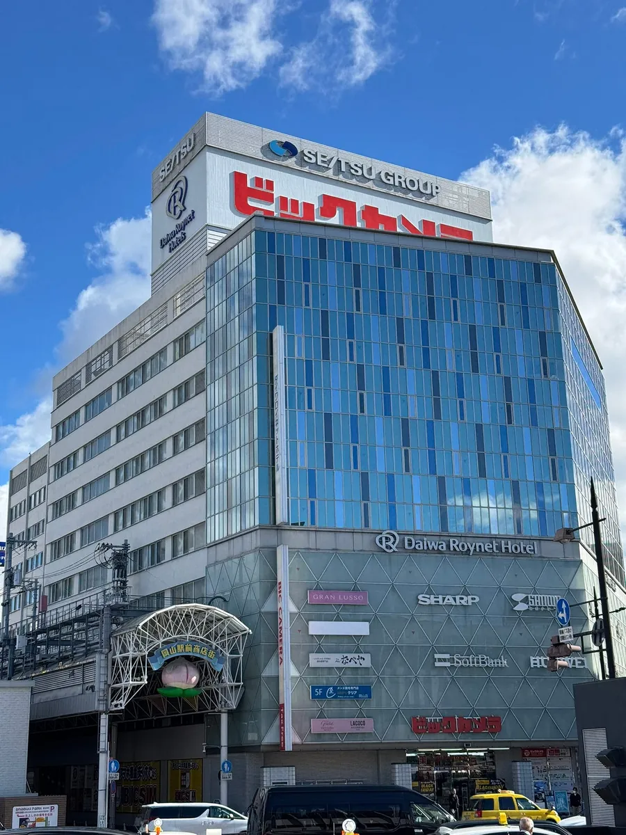 駅の外にも桃太郎の像があります。また、空港では保険の購入を温かく案内しており、今回は本当に自転車にぶつかりそうになりました。⚠️
