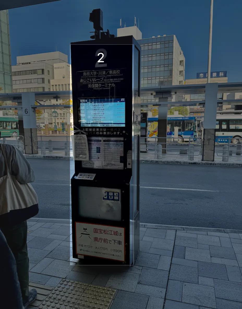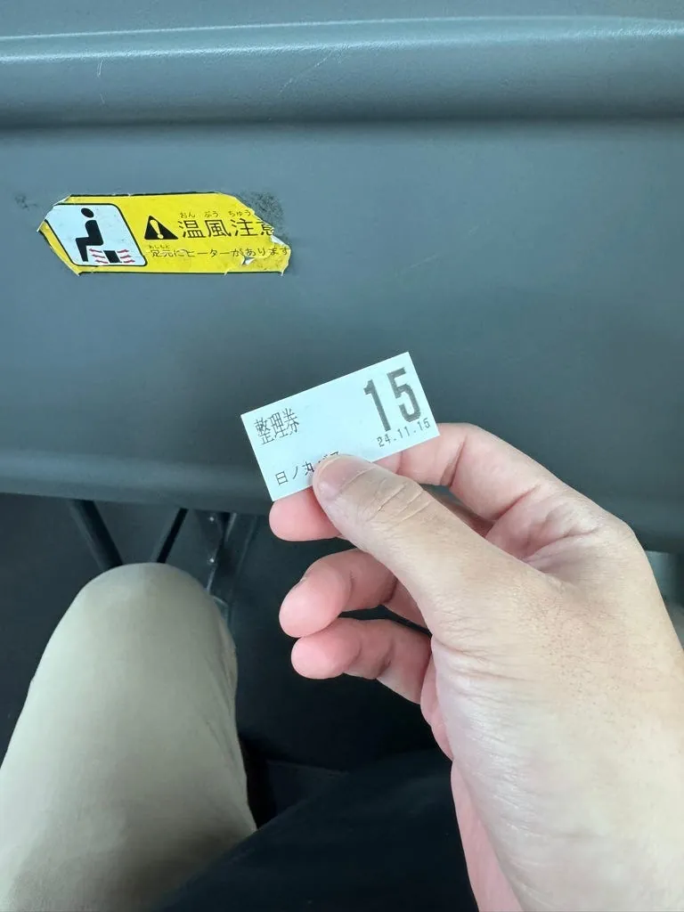 交通系ICカード(Suica)で直接乗降するか、バス停の待合所内で現金を投入して切符を購入できます。