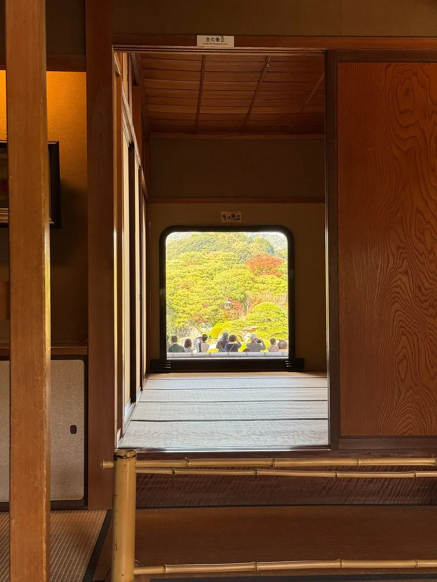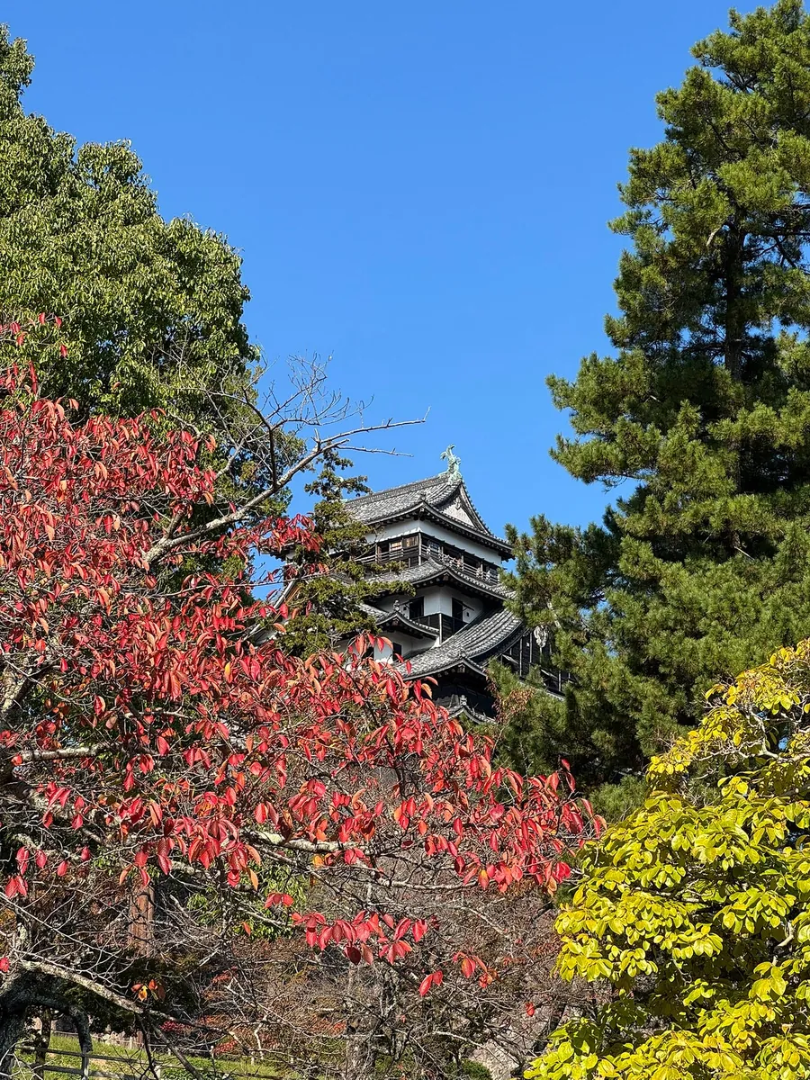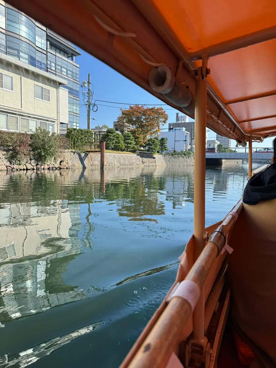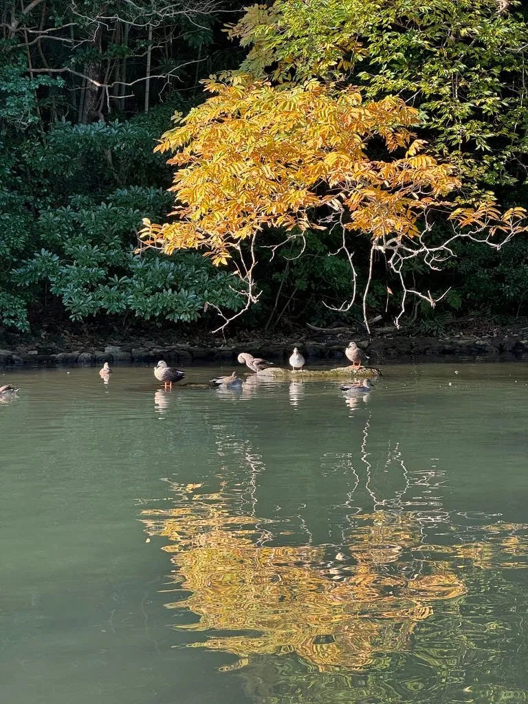 空港の近くをぶらぶらしていると、空港の外に小さな岡山後楽園と人気の紅葉がありました。