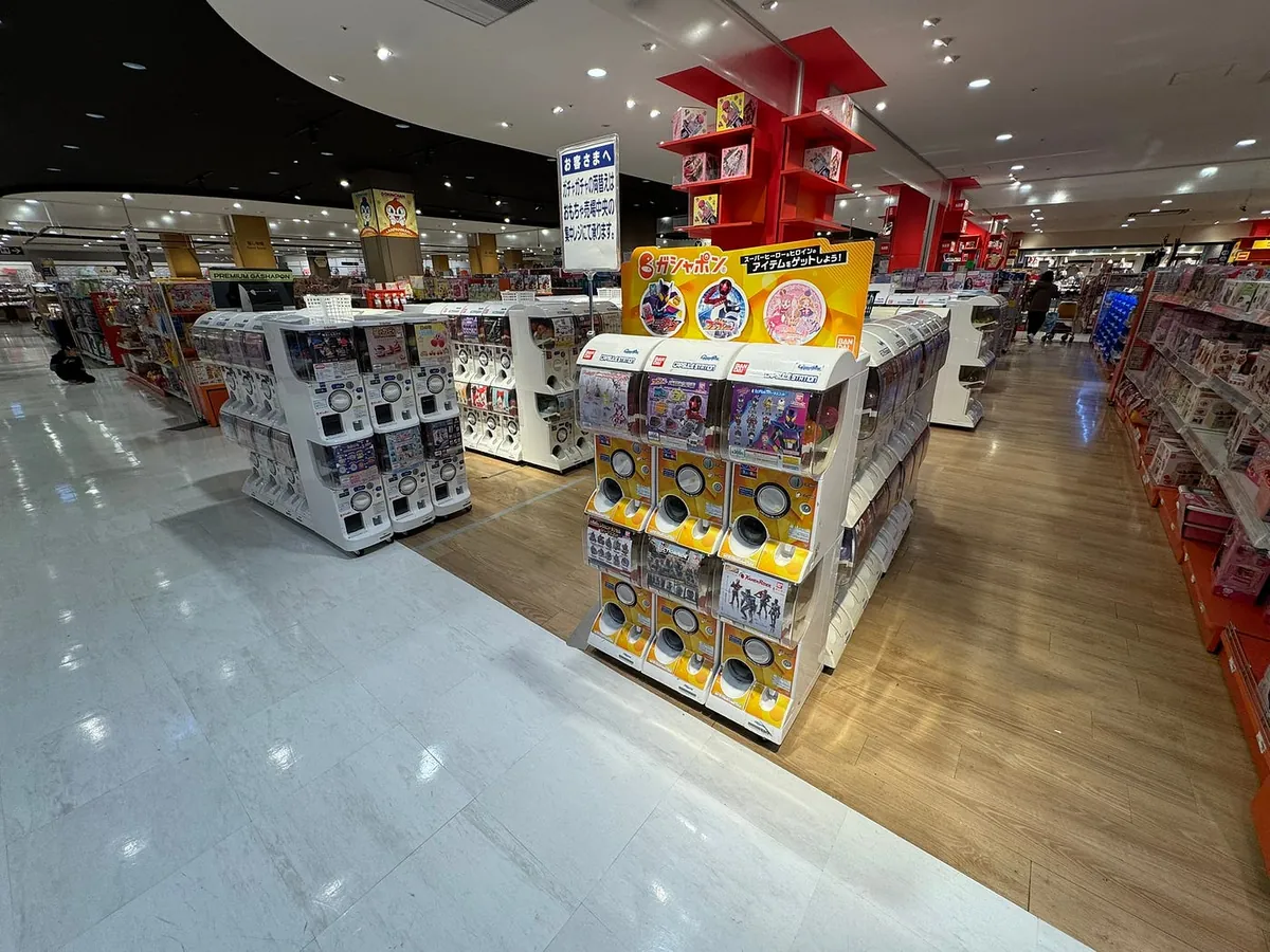 空港は改装中ですが、ガチャガチャはまだあります。