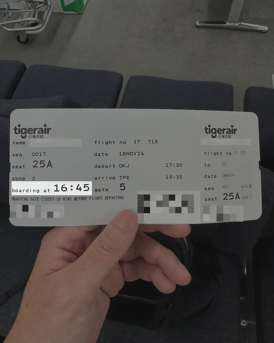 今年は特にタイガーエアの秋のセールで航空券を取らなかったが、昨年は割引チケットを購入できたため、時間も良くて安かった(昨年:行き(11:10)、帰り(15:25)、往復20kg手荷物+座席指定+諸費用込み:NT$ 7,012)。