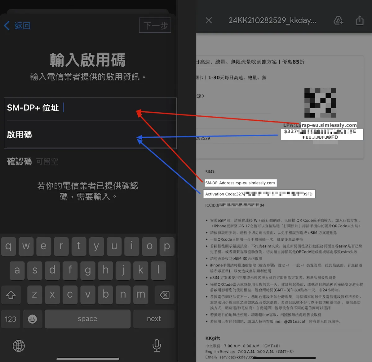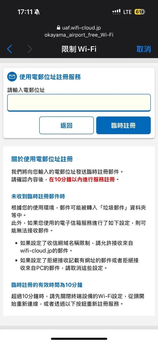二つ目のネットワーク問題は、空港でeSIMを有効化する際に、eSIMの入力と有効化にはネット接続が必要なため、岡山空港のWiFiが不安定だと心配し、あらかじめ台湾で安定したネット環境のもと日本のeSIMを有効化したことです。