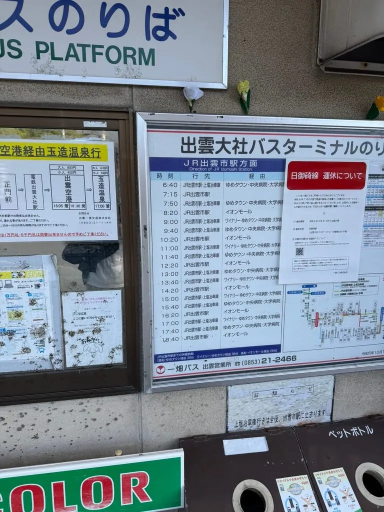 今回の旅程は非常にタイトで、多くの場所を駆け足で回りました。特に最初の3日間は移動距離が長く、滞在時間も短かったため、島根の出雲や松江の美しい景色をゆっくり楽しむことができませんでした。もし機会があれば、もう一度訪れて夕日や紅葉、神迎え神在祭をじっくり見たいです。
